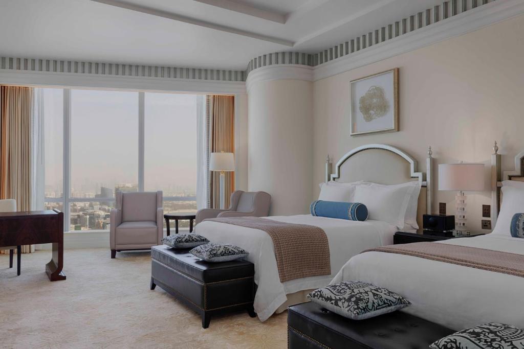 Derrière ce gratte-ciel futuriste se cache un véritable hôtel Palace classique avec la grandeur d'un hall somptueux et des escaliers majestueux. Le St. Regis Abu Dhabi hôtel est situé sur la Corniche et à proximité du Marina Mall. La principale attraction de cet hôtel urbain est sans aucun doute le magnifique Nation Riviera Beach Club avec plage privée, restaurant et agréable piscine, accessible par un long passage souterrain climatisé depuis l'hôtel. Comme dans tous les hôtels St Regis du monde, vous bénéficierez du célèbre service de majordome !