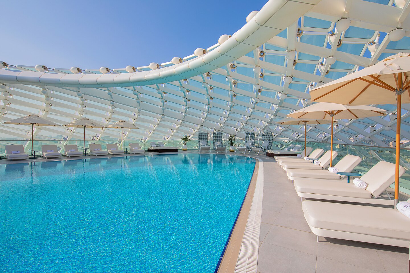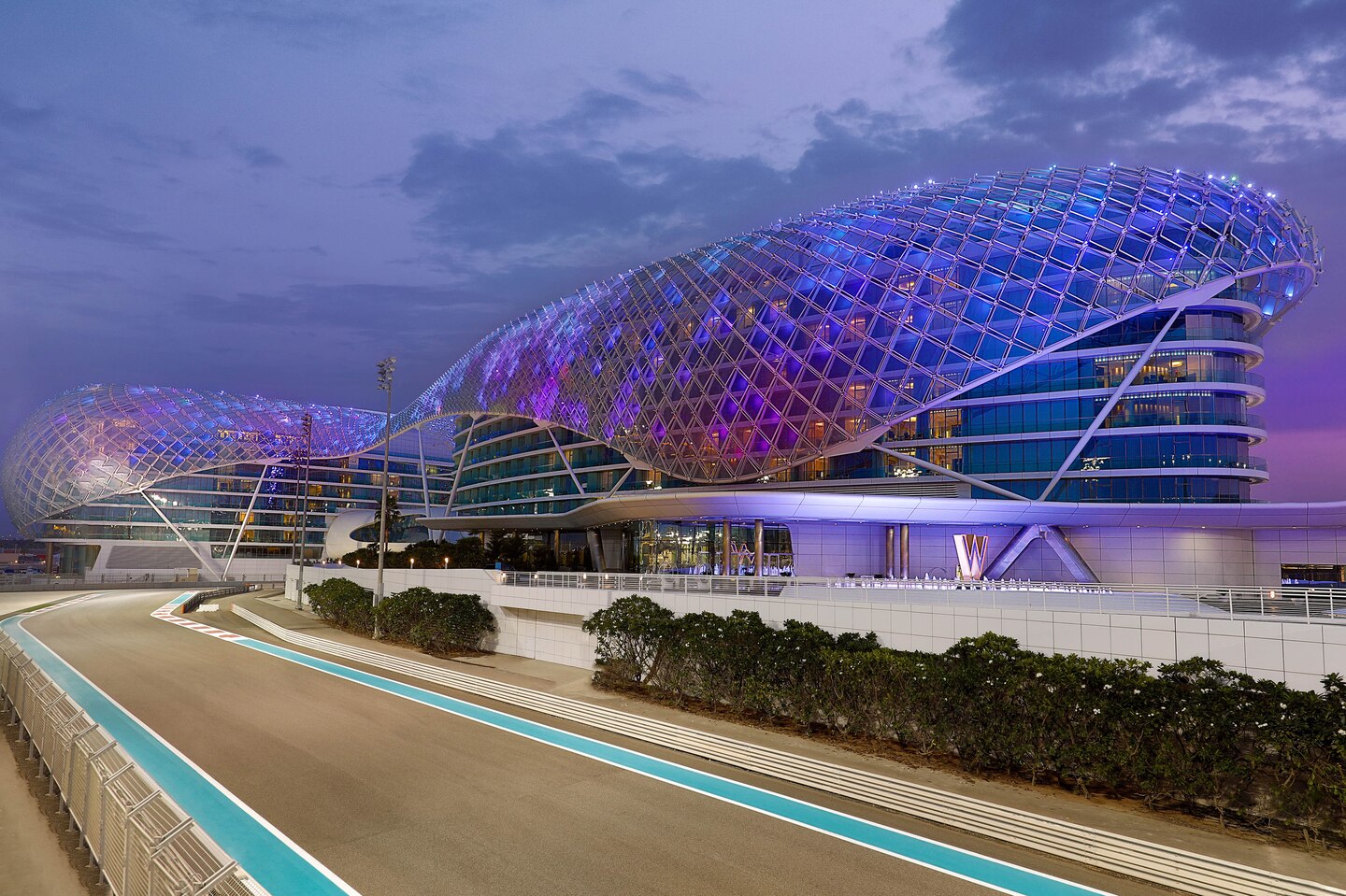 Une architecture ondulante, des structures suspendues en forme de gouttes d'huile, des meubles qui ressemblent à des bijoux. Situé sur Yas Island, le W Abu Dhabi est un nouvel hôtel spectaculaire qui intègre la tradition arabe dans un design coloré et expérimental. L'emplacement est aussi remarquable que l'architecture : sur le port de plaisance, au-dessus du circuit du Grand Prix. De plus, des curiosités telles que Ferrari World, Warner Brothers Studios et le Yas Mall, se trouvent à quelques pas.