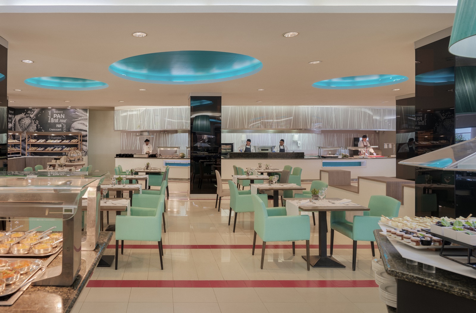 4 restaurants à la carte : ‘Il Trastevere’ (italien, dîner), ‘Sakura’ (japonais, dîner), ‘Naturalia’ (déjeuner) et ‘La Brasserie’ (dîner)