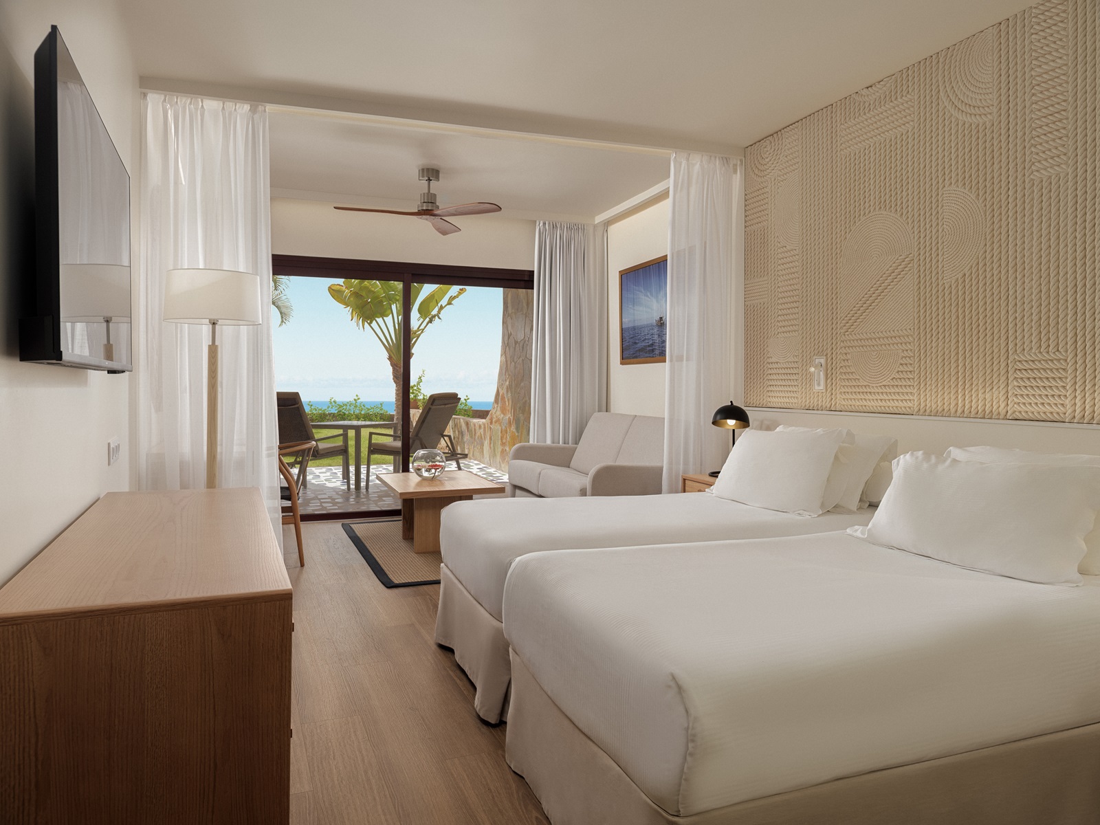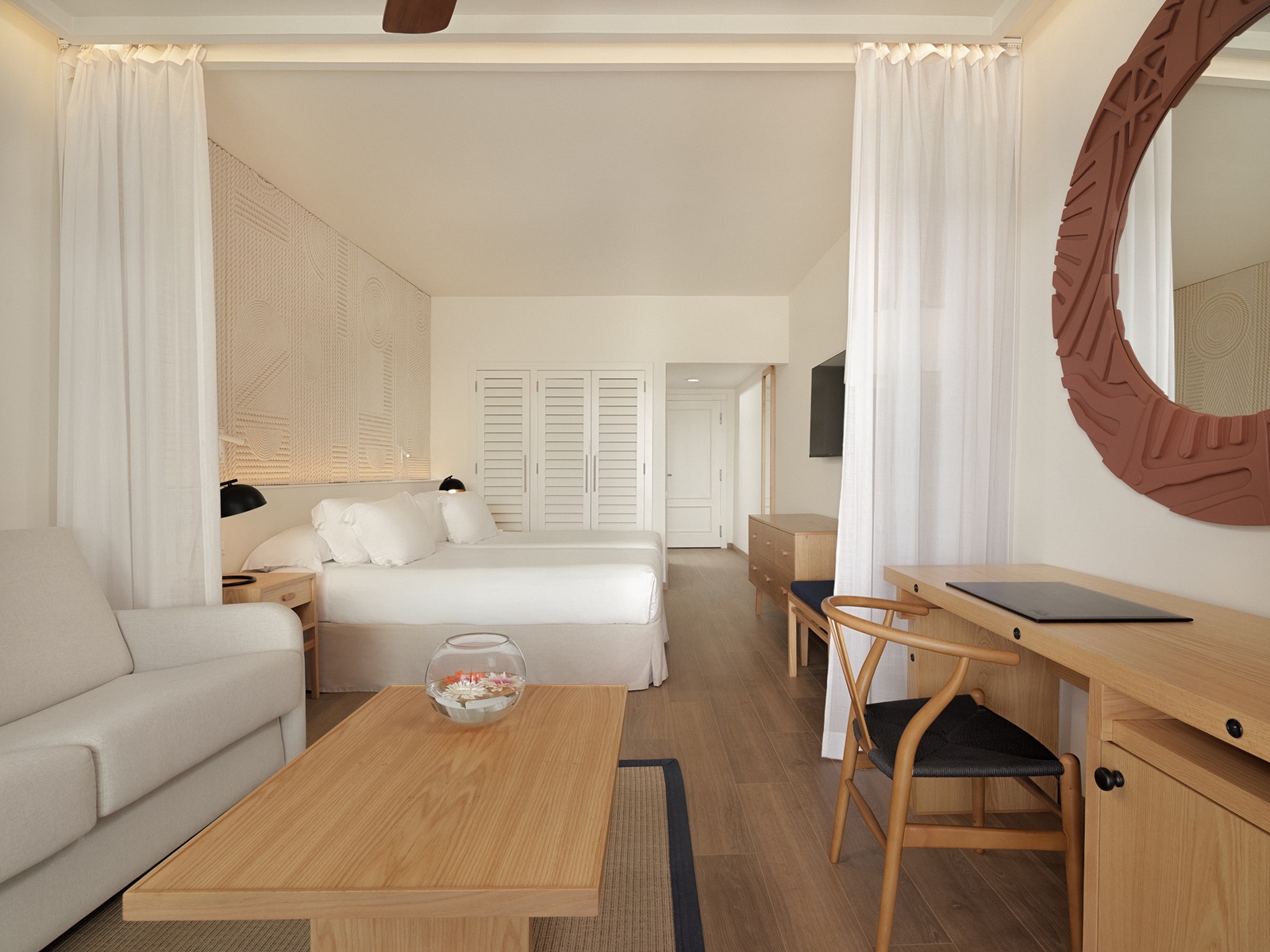 chambres privilèges (41 m²) avec vue piscine ou vue mer et privilèges supplémentaires : cadeau de bienvenue, check-in et check-out personnalisés, check-out tardif sous réserve de disponibilité, service d'oreillers, service de conciergerie, petit-déjeuner et dîner au restaurant Privilège 'Gaudi', déjeuner au restaurant à la carte 'Naturalia', dîner dans un des restaurants à la carte (sur réservation et sous réserve de disponibilité), accès au Privilege Lounge avec snacks et boissons, accès gratuit au centre de bien-être et réduction sur les soins de spa et piscine exclusive avec terrasse solarium et chaises longues