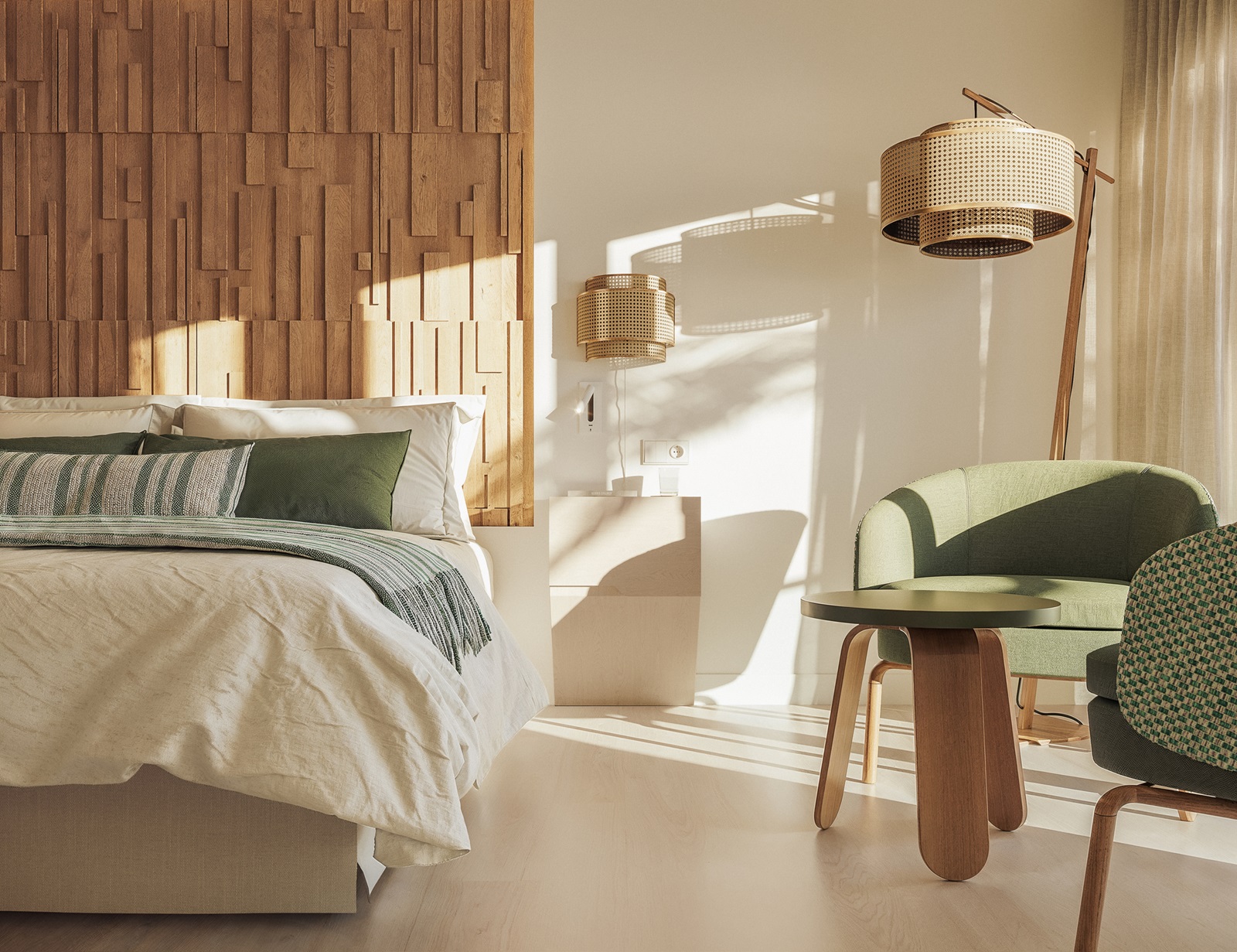 chambres (32 m²) avec accès direct à une piscine commune et vue mer latérale