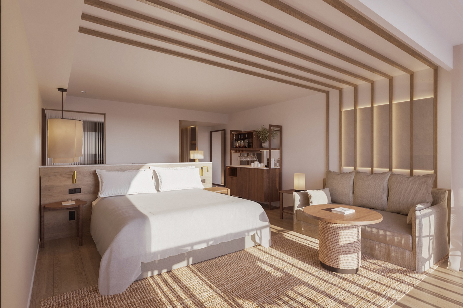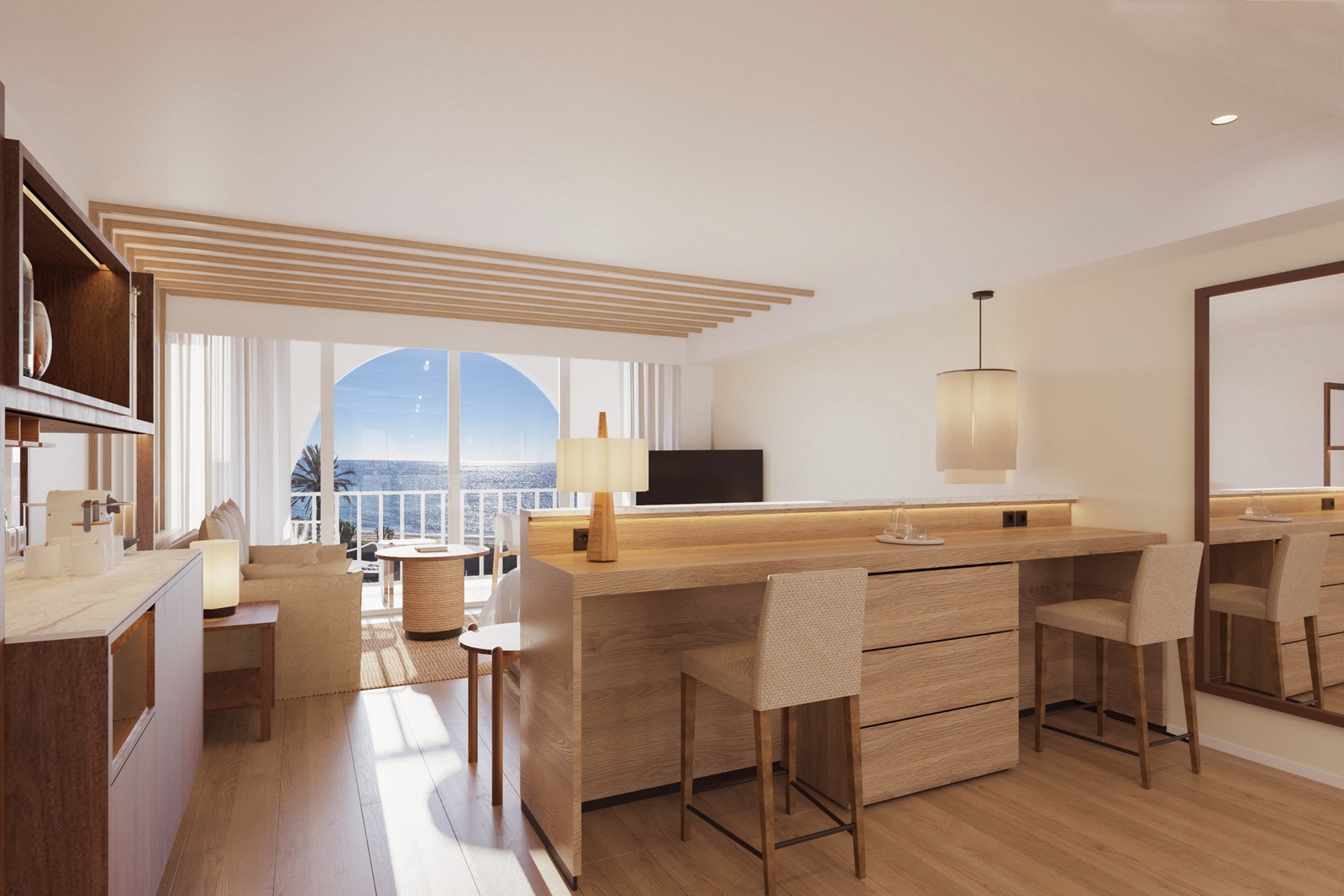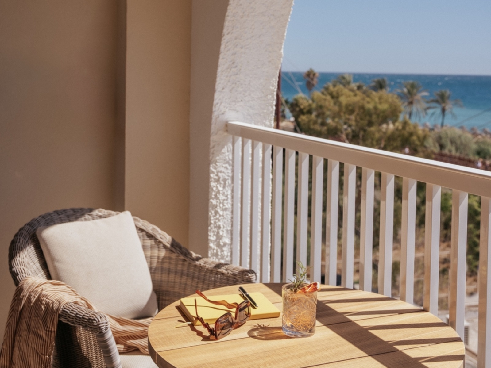 suites junior Superior ME+ (47 m²) avec vue piscine ou vue mer latérale et privilèges ME+ (e.a. check-in et check-out personnalisés, late check-out selon disponibilité, service de conciergerie, articles de toilette supérieurs)
