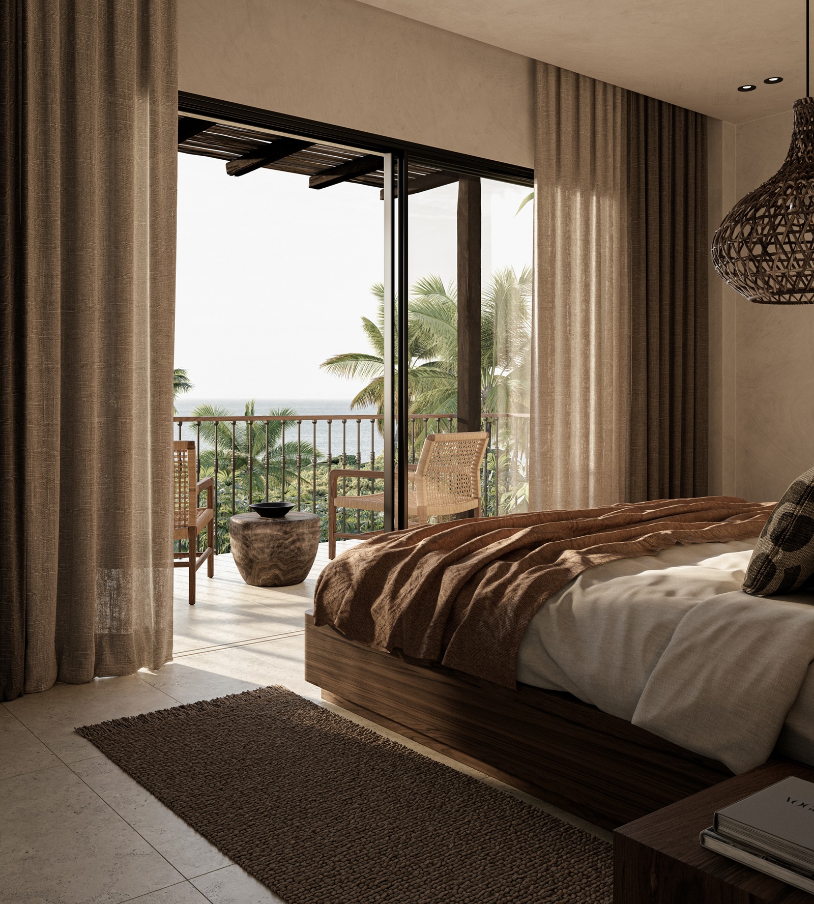 suites (43 m²) avec chambre à coucher séparée, dressing, salon et balcon avec vue jardin ou vue mer (sur demande)