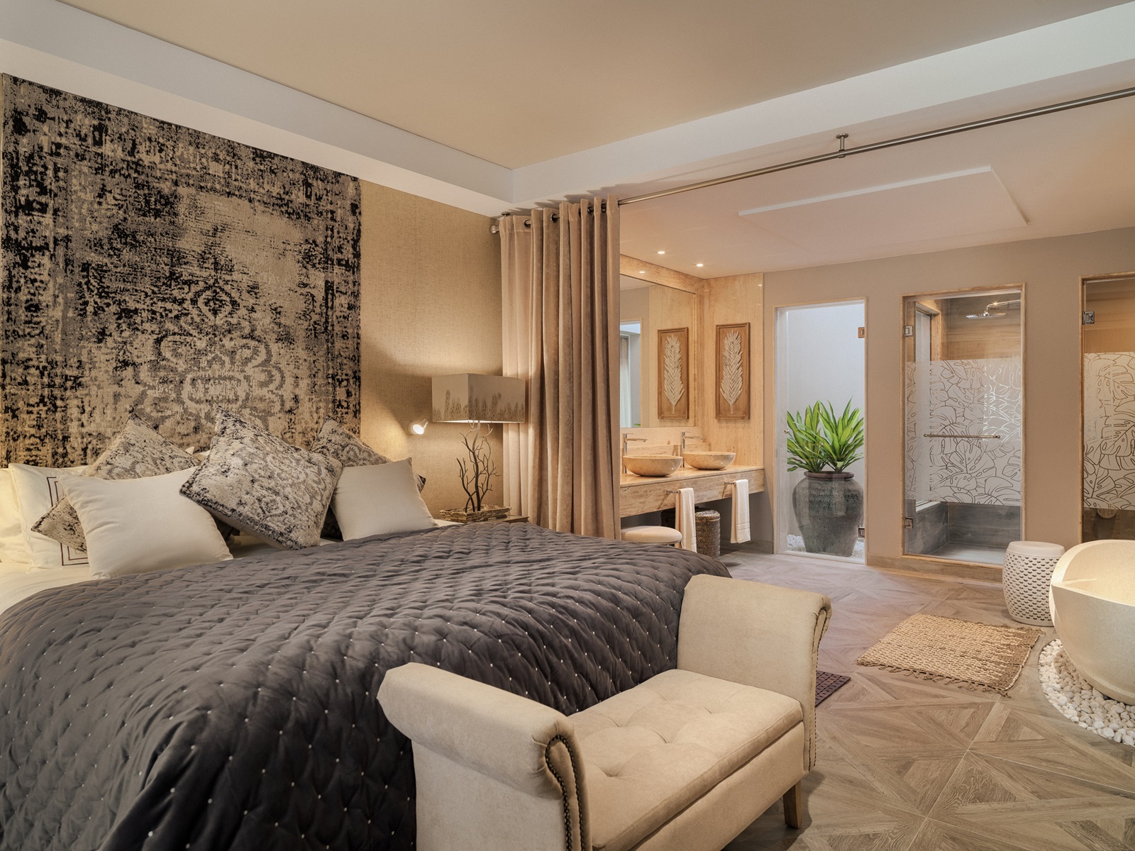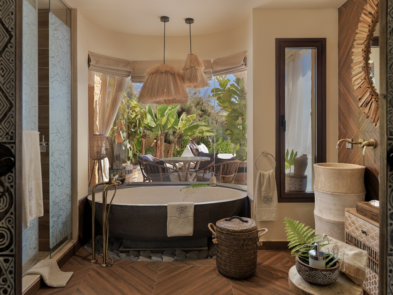 toutes les villas de luxe avec un intérieur moderne et élégant disposent d'une salle de bains avec bain et douche séparée, sèche-cheveux, sorties de bain et pantoufles, climatisation, TV à écran plat, minibar (€), appareil Nespresso®, fer et planche à repasser, coffre-fort et terrasse. Selon la catégorie choisie (River Villa, Pool Villa, Grand Pool Villa ou Lagoon Villa), les villas sont reliées à une rivière, situées au bord d’un ‘lac africain’ ou avec piscine privée