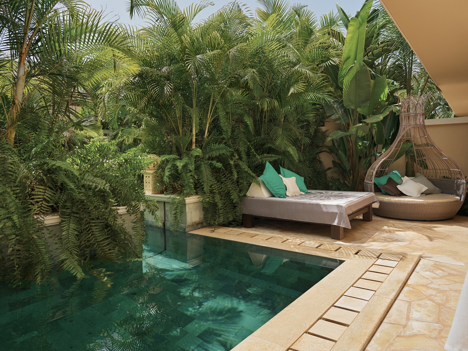 Pool Villas (140 m²) avec séjour, chambre à coucher séparée, terrasse spacieuse avec lit balinais et piscine privée