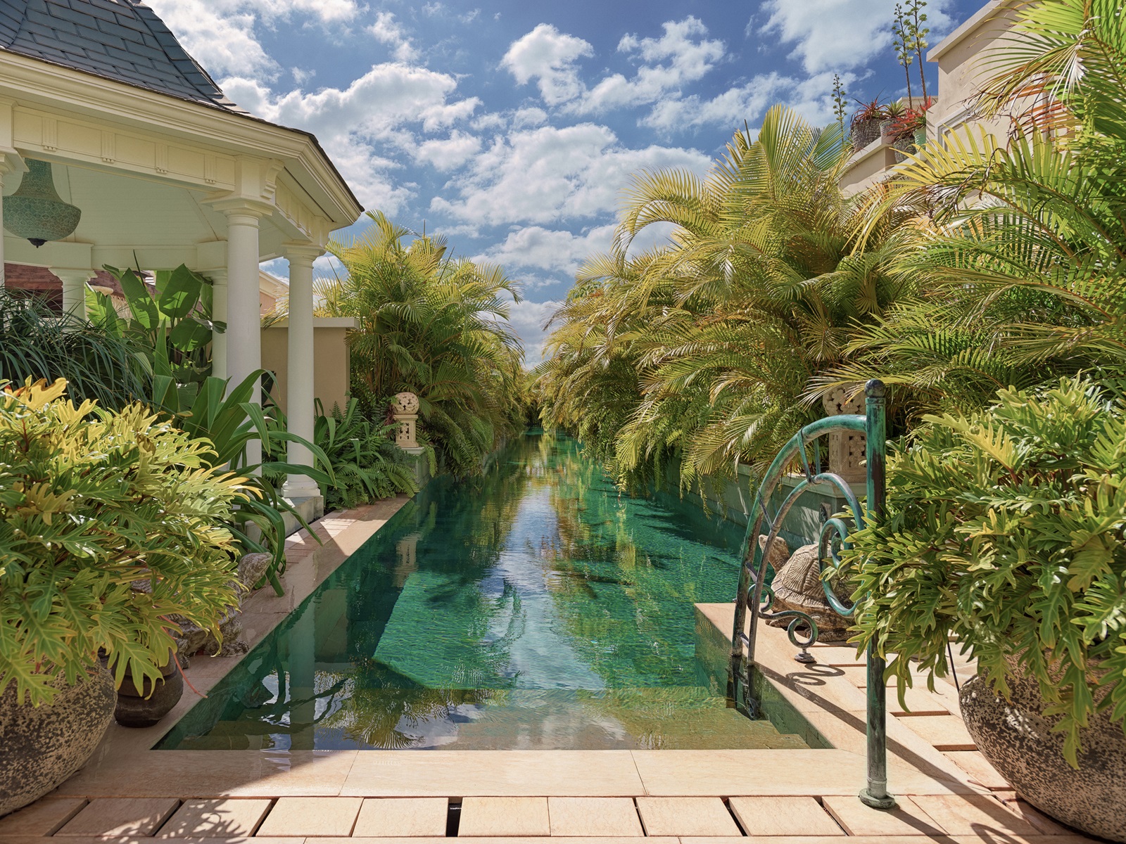 4 piscines chauffées e.a. piscine principale, 2 piscines-rivières, 1 piscine à débordement et une piscine lagon spécialement pour les clients séjournant dans les Lagoon Villas