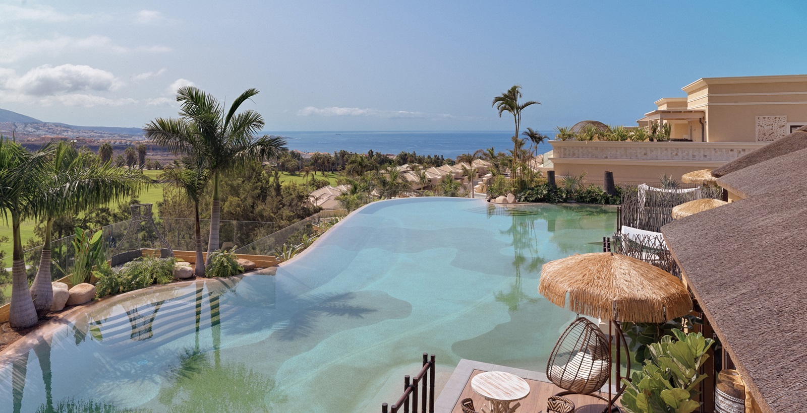 Le luxueux Royal River Luxury Hotel à Costa Adeje, Tenerife, se distingue par son architecture élégante et son expérience de séjour unique. Cet hôtel réservé aux adultes se compose de villas spacieuses conçues avec le souci du détail et de l'intimité, chacune avec accès à une rivière ou à une piscine privée. Le point culminant est la terrasse sur le toit avec piscine à débordement et bar, d'où vous pouvez admirer l'océan Atlantique. L'architecture respire l'harmonie naturelle, avec des accents de bois chaleureux et des influences balinaises. Profitez d'une gastronomie raffinée dans l'un des quatre restaurants, dont un bistrot français et un concept d'inspiration asiatique. Le centre de bien-être offre un espace de détente, avec des soins qui équilibrent le corps et l'esprit. Grâce à son atmosphère intime, son service personnalisé et ses installations de haute qualité, le Royal River est le choix idéal pour ceux qui apprécient le confort et la tranquillité.