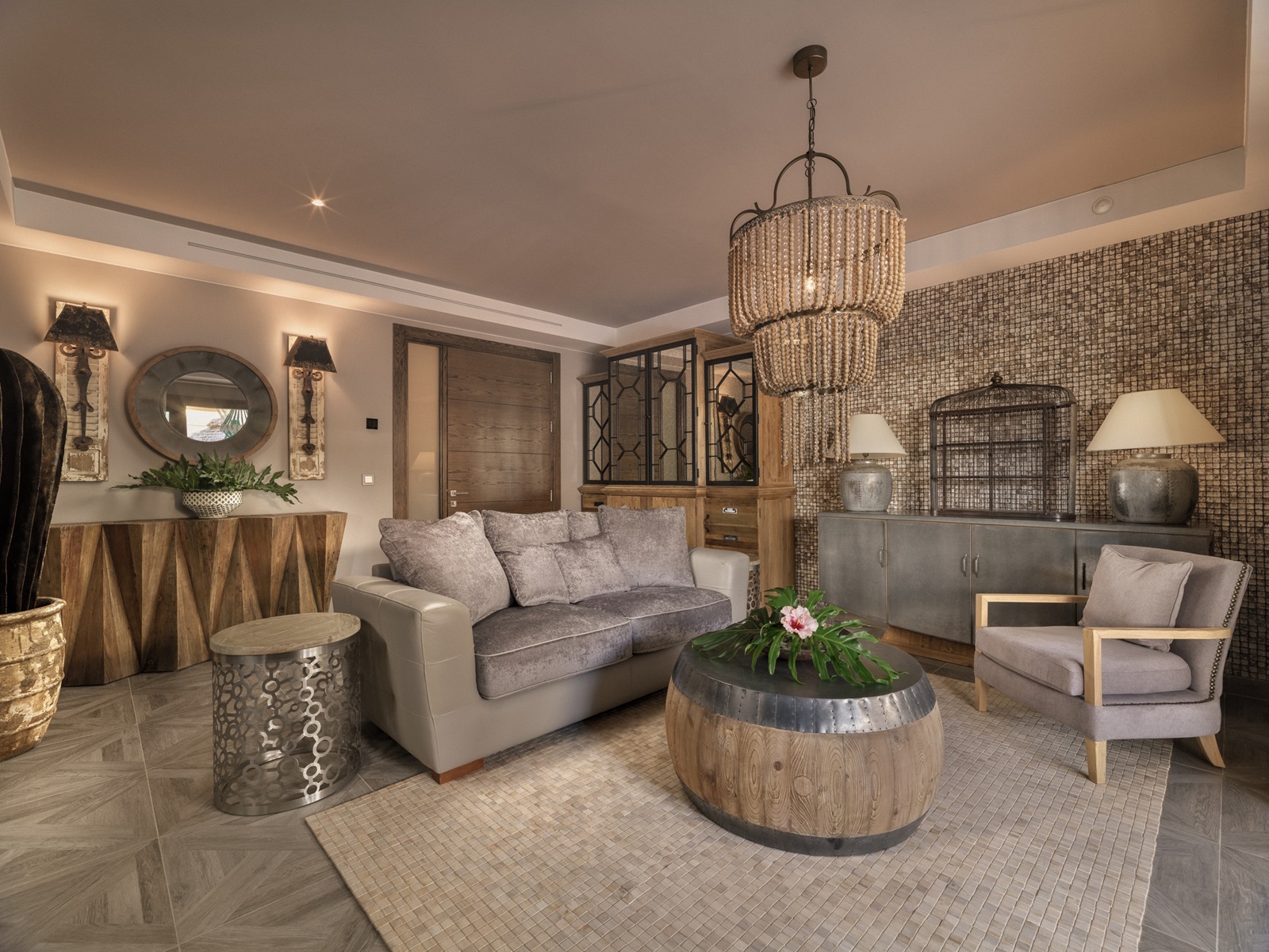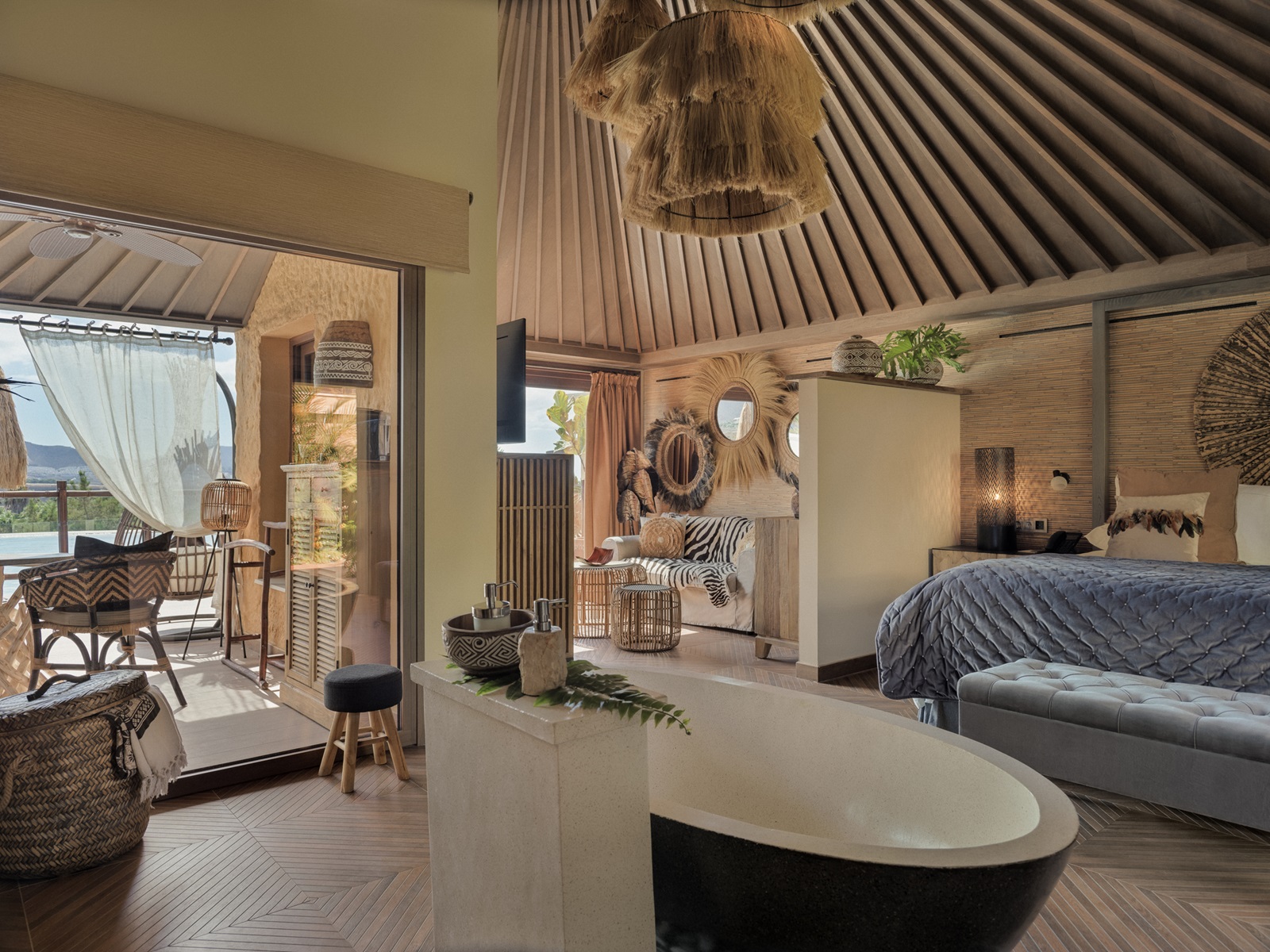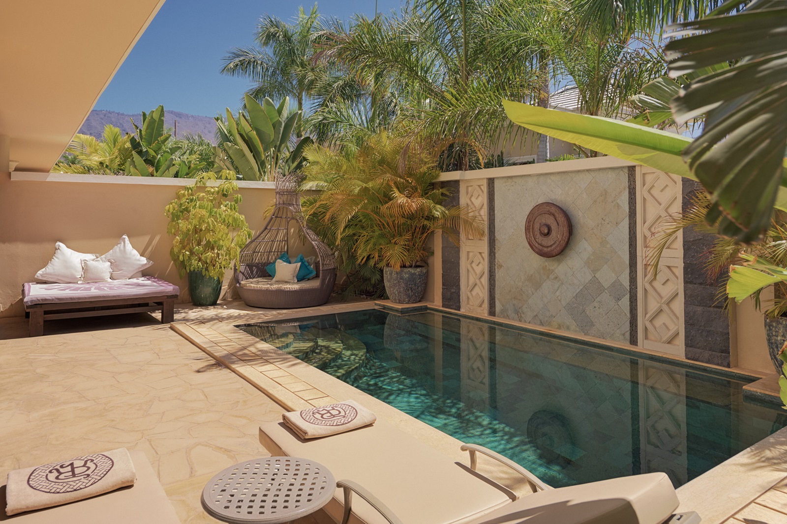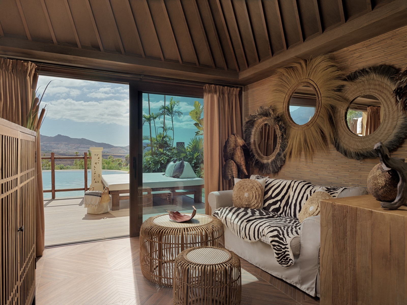 Paradise Pool Villa (325 m²) suite de style africain en plan ouvert avec séjour, 3 chambres à coucher, 3 salles de bains et piscine privée