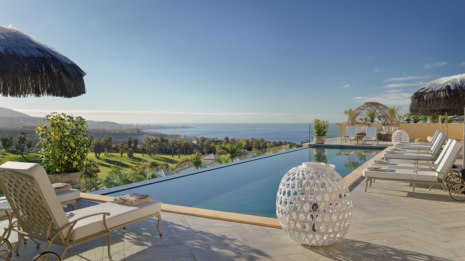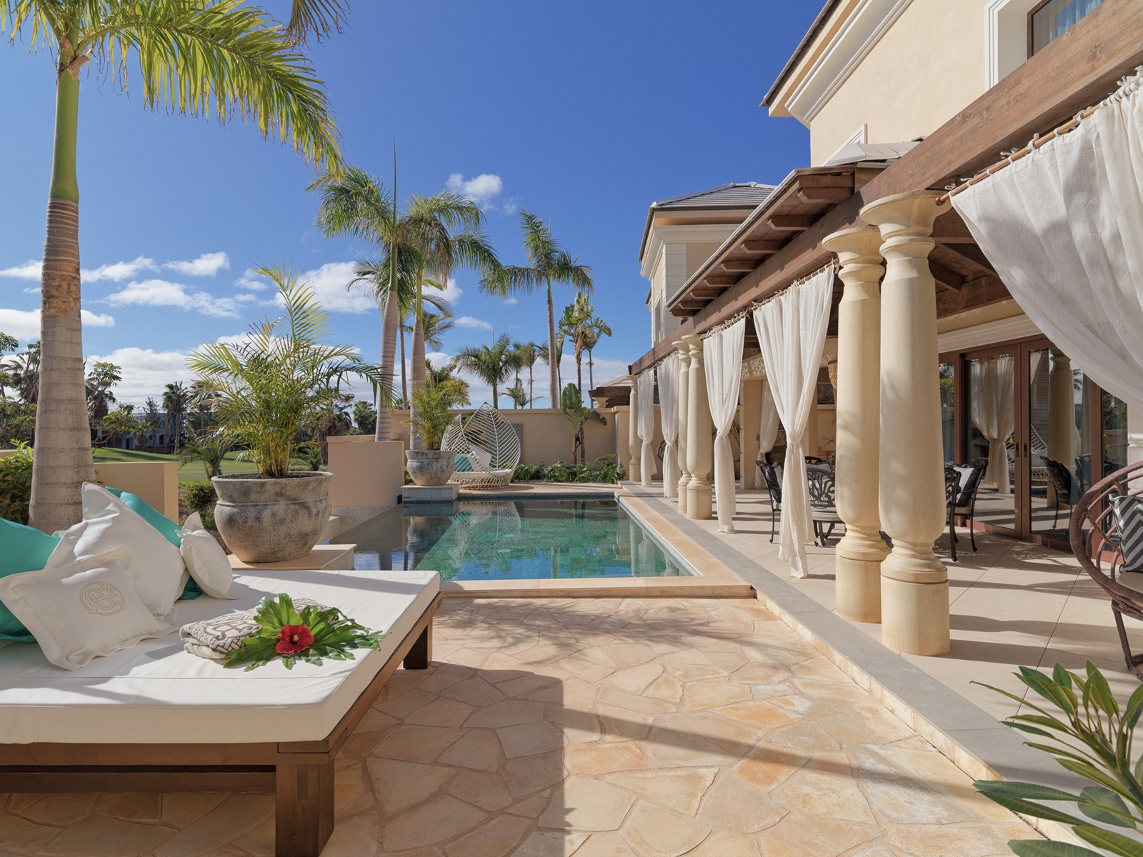 Grand Pool Villas (207 m²) avec séjour, 2 chambres à coucher séparées, 2 salles de bains, terrasse avec lounge, piscine privée et vue sur le terrain de golf