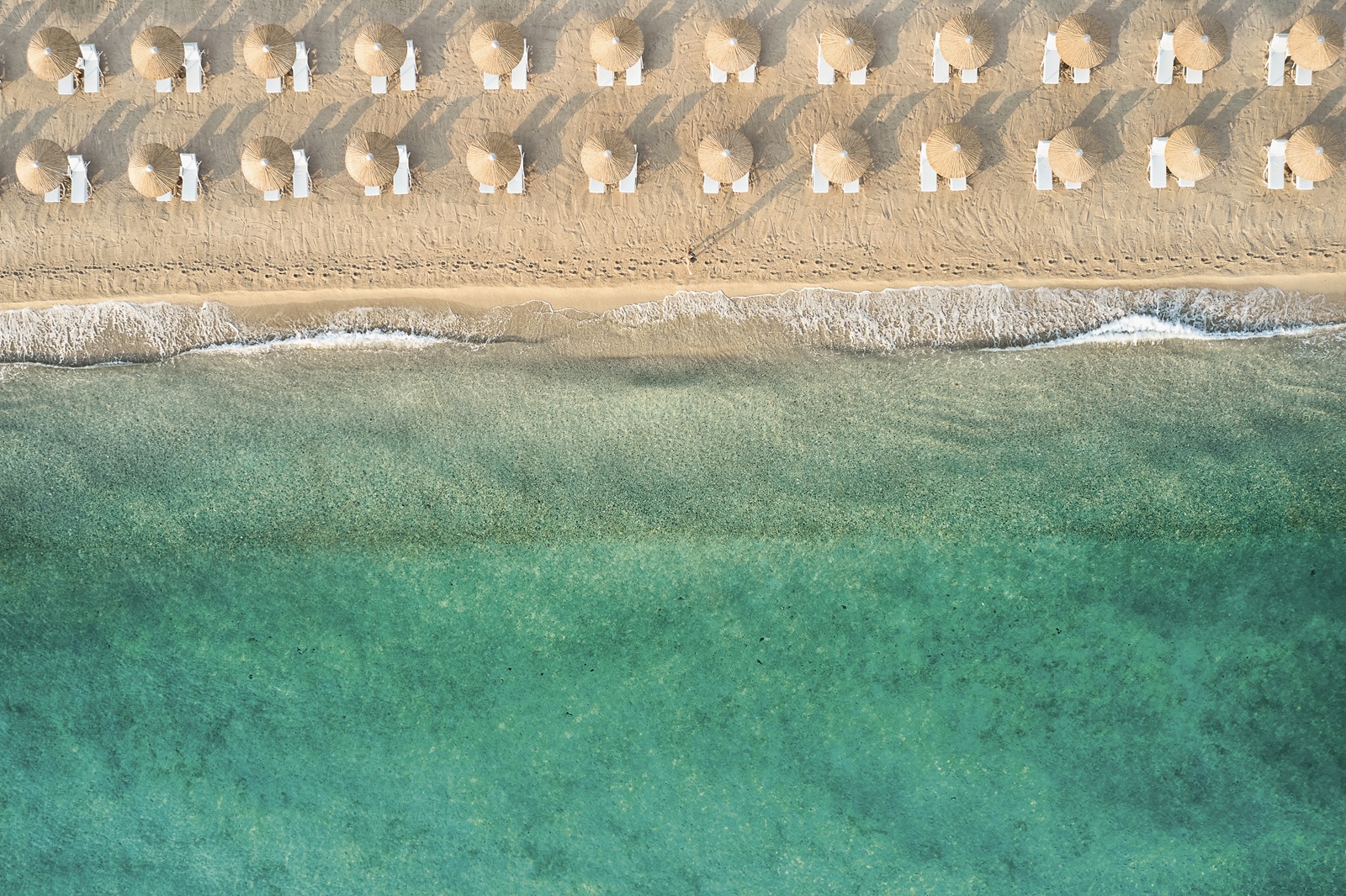 2 bars : élégant bar à cocktails et à champagne ‘Raw Bar’ (avec finger food et sushis) et ‘Topos Beach Bar Restaurant’ avec une vue imprenable sur la mer
