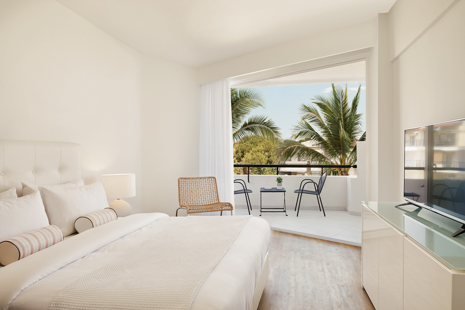 Ivory Junior Suites (34 m²), situées aux étages les plus élevés du bâtiment principal, avec une salle de bain plus grande (avec baignoire indépendante), dressing, balcon et vue mer latérale (près de la Vibrant Pool)