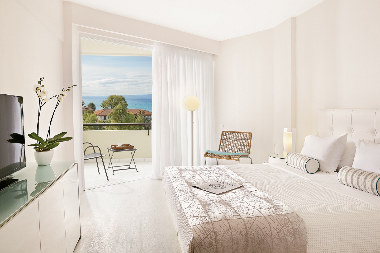 Sapphire Retreats (27 m²) aux étages les plus élevés du bâtiment principal avec balcon et vue mer (près de la Vibrant Pool)