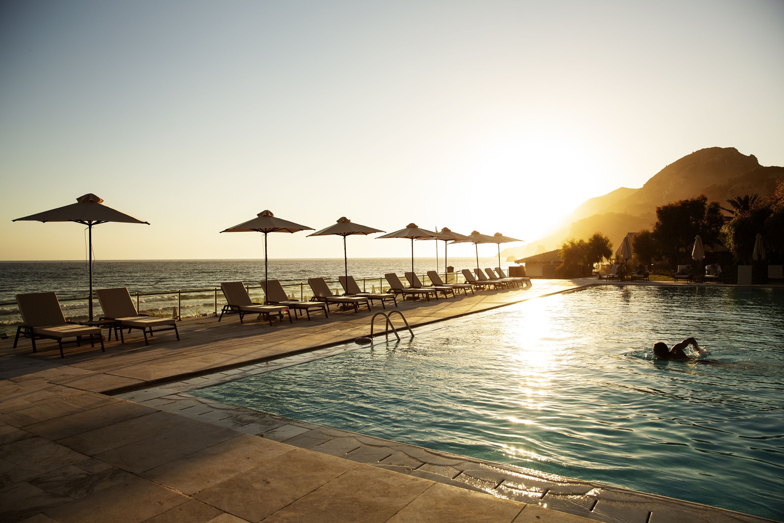 Sapphire Sublime Family Retreats Swim Up (34 m²) au rez-de-chaussée avec coin salon et terrasse avec accès à la piscine commune et vue mer