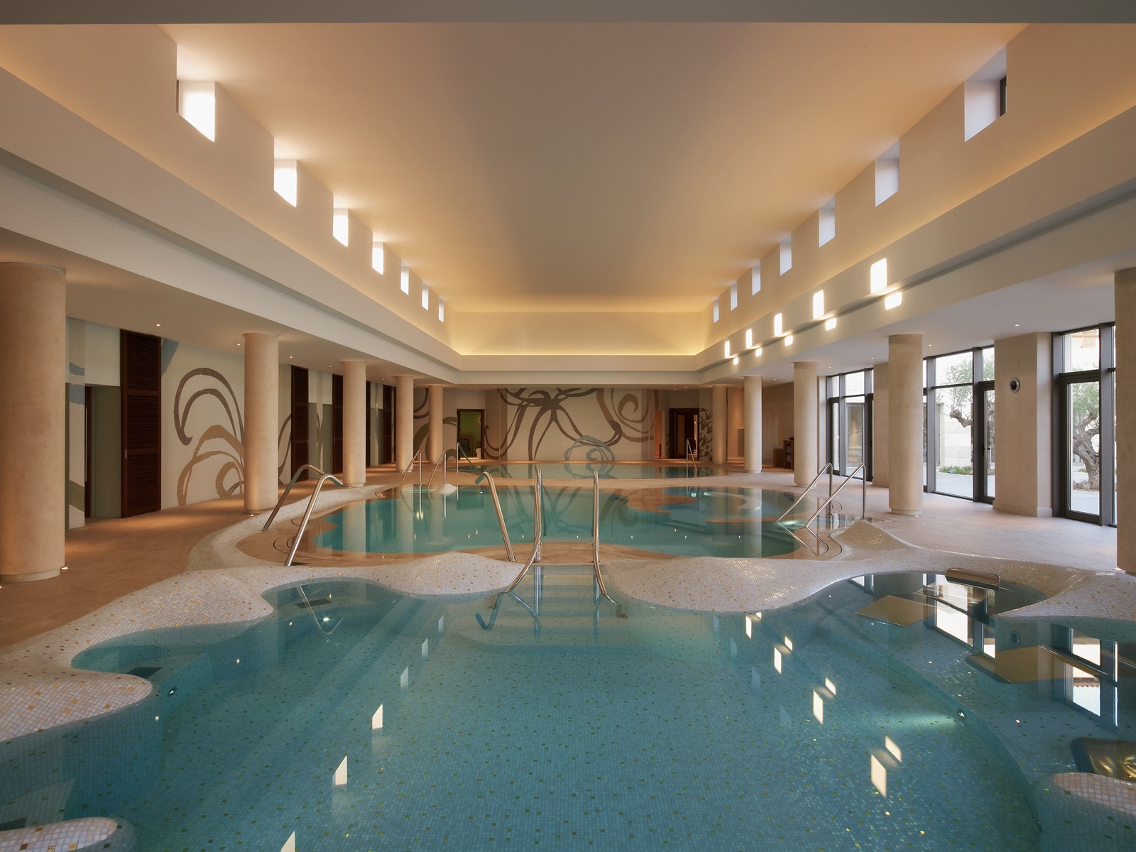 vaste ‘Anazoe Spa’ (4000 m²) : 21 salles de soins (à l'intérieur et à l'extérieur, les massages dans les oliveraies sont uniques), thalassothérapie avec piscines, grotte de glace, saunas, manucure, pédicure, massages et soins de beauté