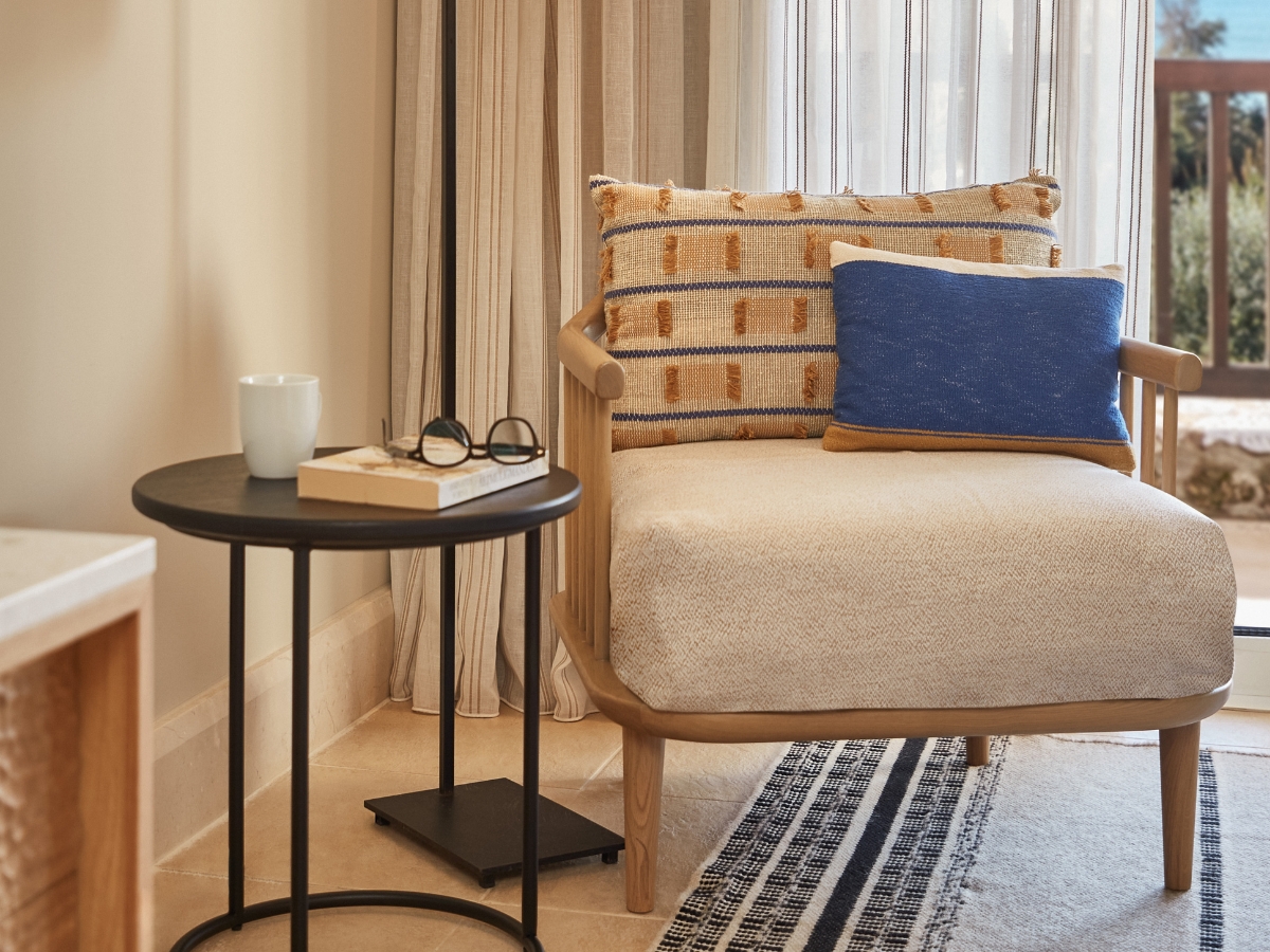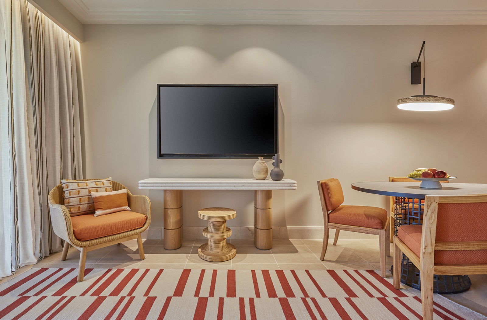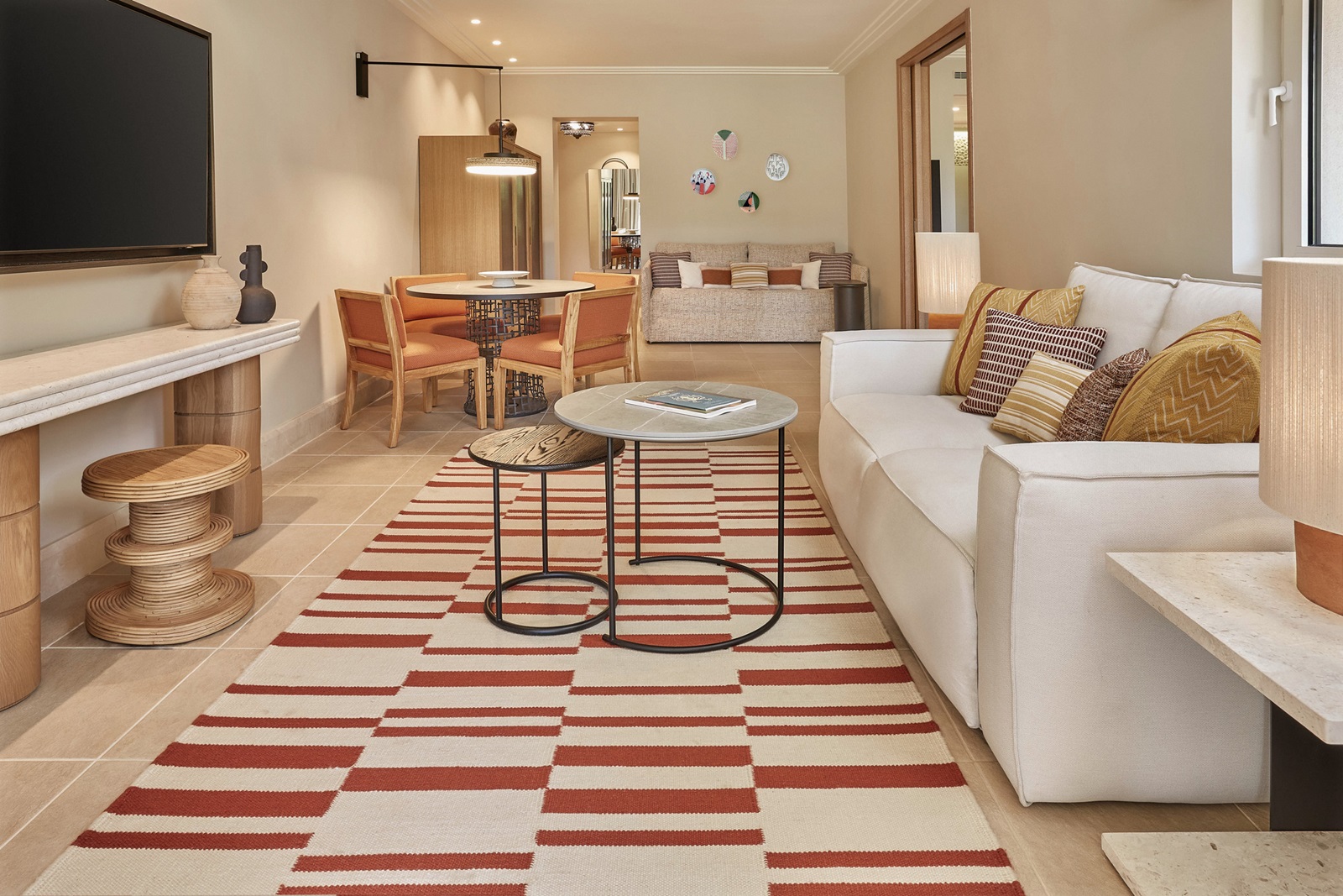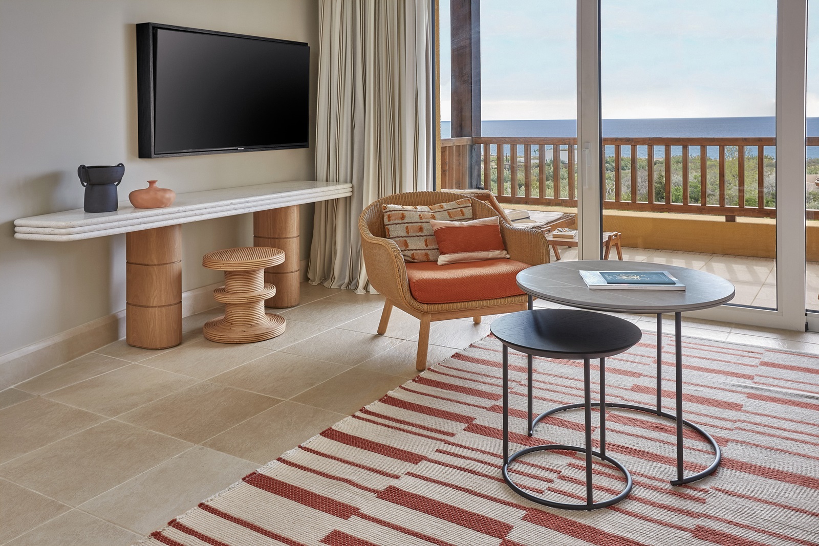 toutes les chambres spacieuses (avec des accents de bois clair et des couleurs sable) disposent d'une salle de bain (baignoire, douche séparée, sèche-cheveux), télévision à écran plat, climatisation, coffre-fort, machine Nespresso, wifi (gratuite), minibar (€) et balcon ou terrasse. Toutes les chambres et suites seront magnifiquement rénovées et opérationneles pour la saison 2025
