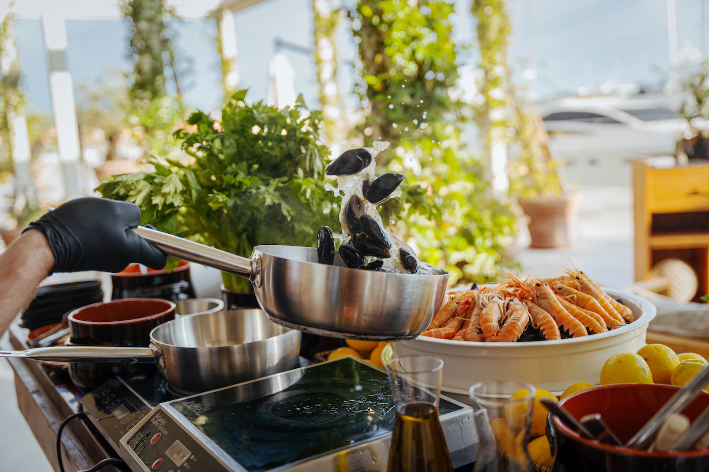situé sur la promenade de la baie de Lustica avec des bars, des restaurants et des boutiques
