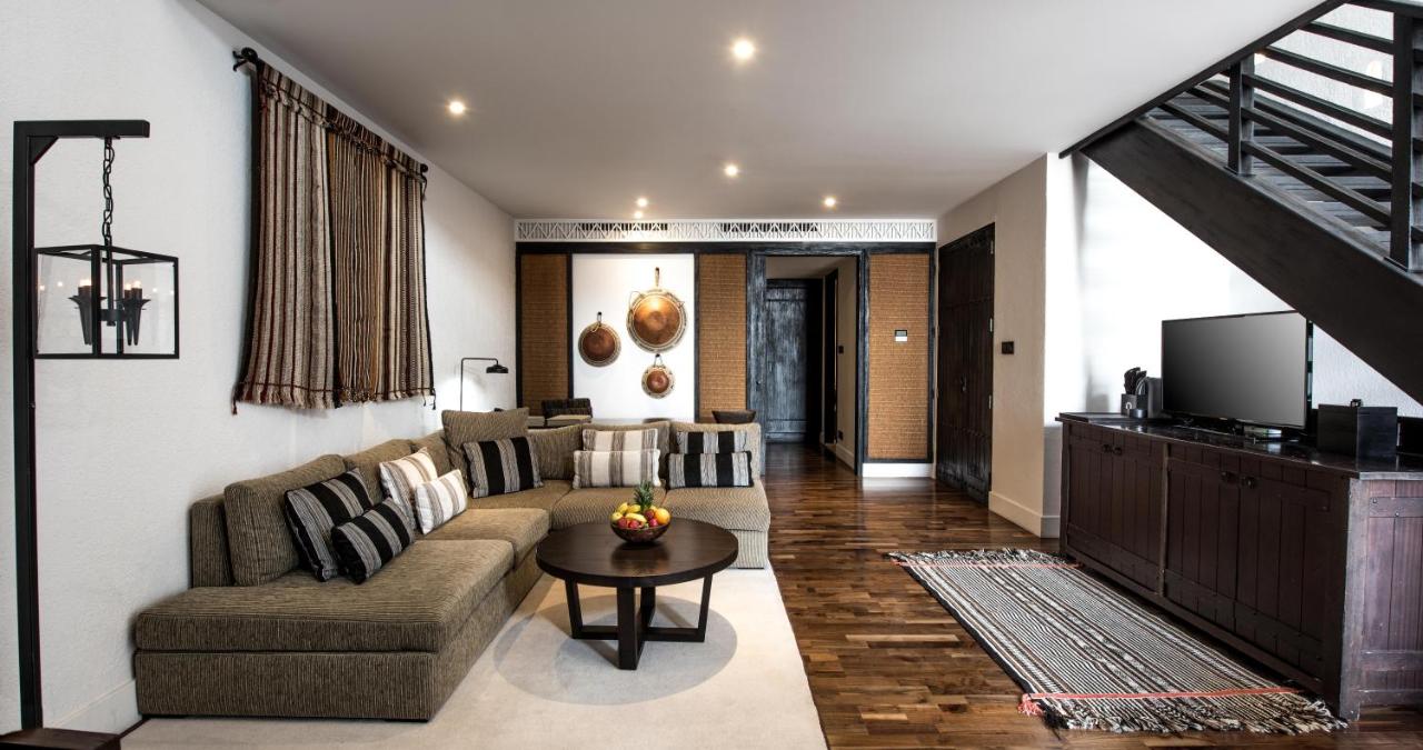 les suites Jabal Terrace (104 m²) sont situées à l'étage dans les bâtiments séparés et disposent d'un salon et d'une chambre à coucher spacieux et d'une belle et grande terrasse