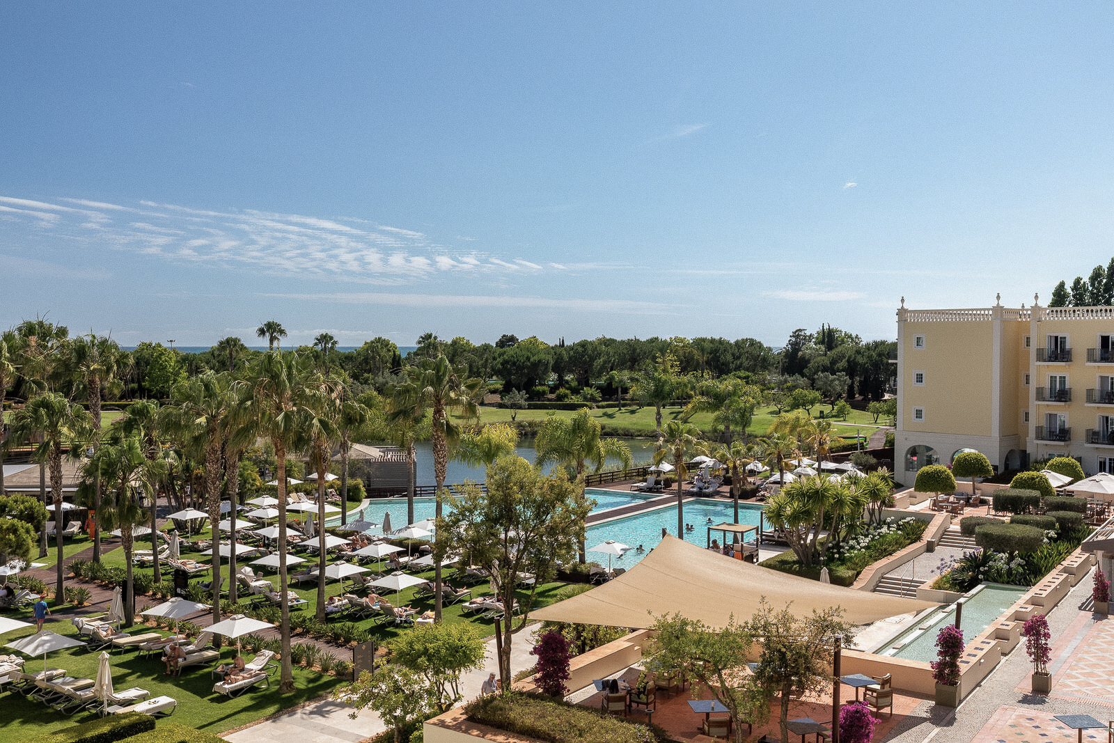 Avec son propre lac privé, ce resort cinq étoiles fait découvrir à l'Algarve le caractère et l'âme uniques des légendaires Domes Resorts. Cet hôtel de prestige à la réputation internationale jouit d’une situation unique à proximité d’une plage de sable, entre le port de plaisance de Vilamoura et la mer, et est entouré de pas moins de 6 parcours de golf. Ses sublimes chambres conjuguent luxe et simplicité et offrent de magnifiques vues panoramiques. Vous découvrirez dans ce complexe la toute première piscine d'Europe à fond de sable et le tout aussi spectaculaire restaurant flottant Makris, qui vous fera découvrir les saveurs gréco-méditerranéennes. Après une visite au Soma spa de renom, vous finirez de vous détendre au Apricus Lagoon Bar, dont le décor exotique vous fera voyager jusqu’en Inde.