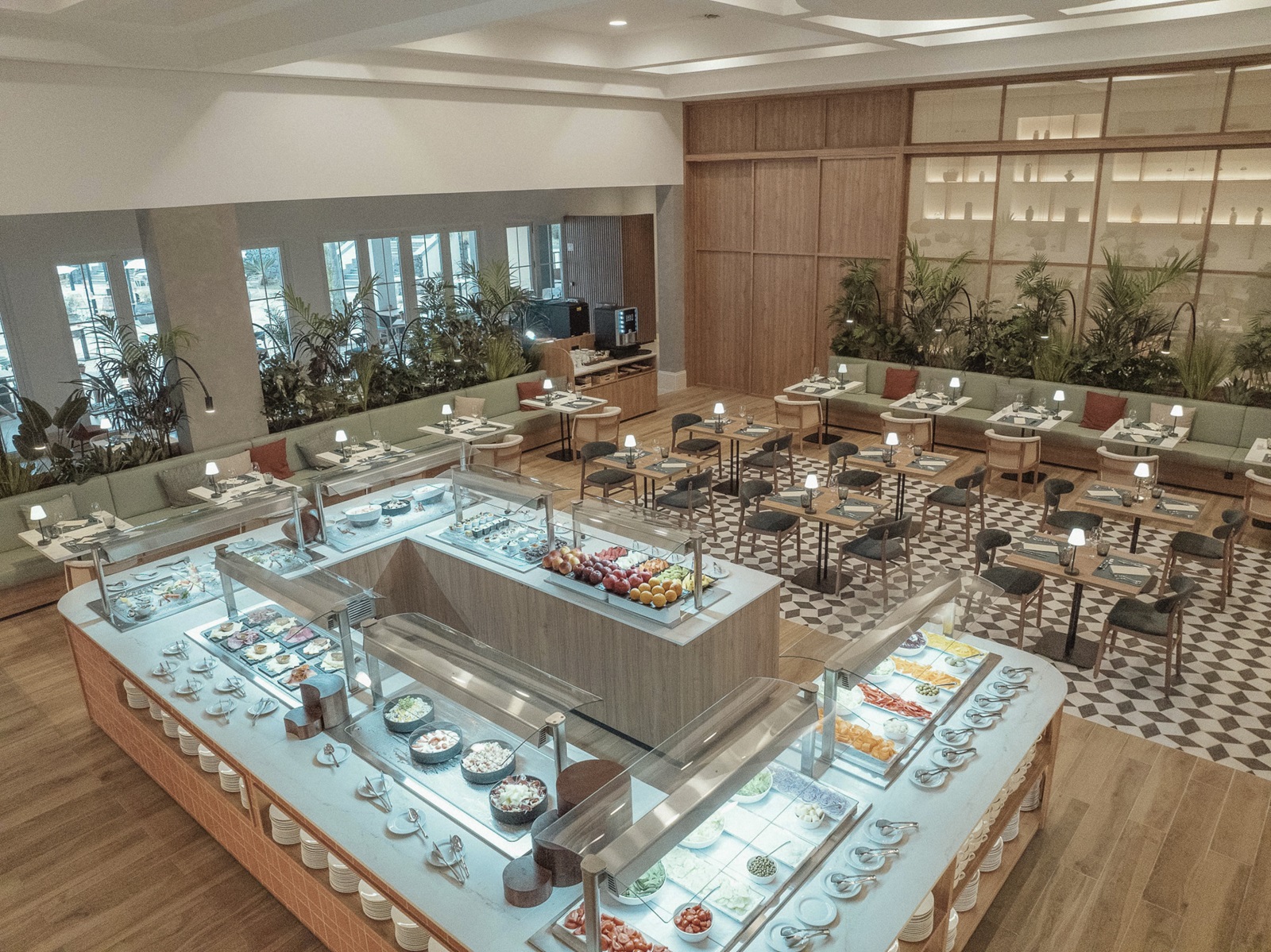 petit-déjeuner, déjeuner et dîner sous forme de buffet au restaurant ‘World Café’ (cuisine internationale) avec terrasse