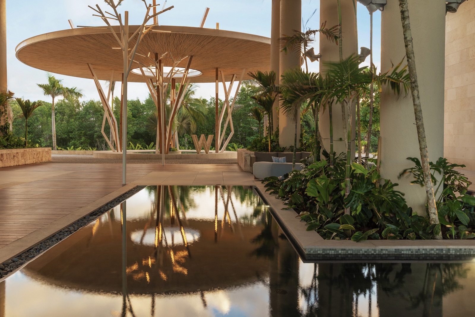 jardin (allée tropicale de style palapa traversant le complexe et flottant au-dessus d'un jardin de plantes plantes autochtones)