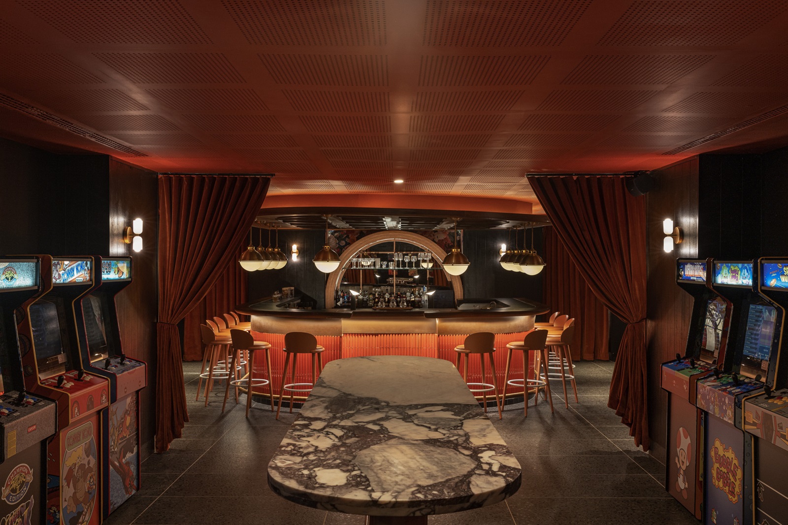 6 bars : e.a. Chill swim-up Pool Bar, Living Room Bar, Satsuma Rooftop Bar, 33 1/3 Speakeasy Bar, Sensazioni Bar et Taproom (beer hub situé à côté du Trade Market)