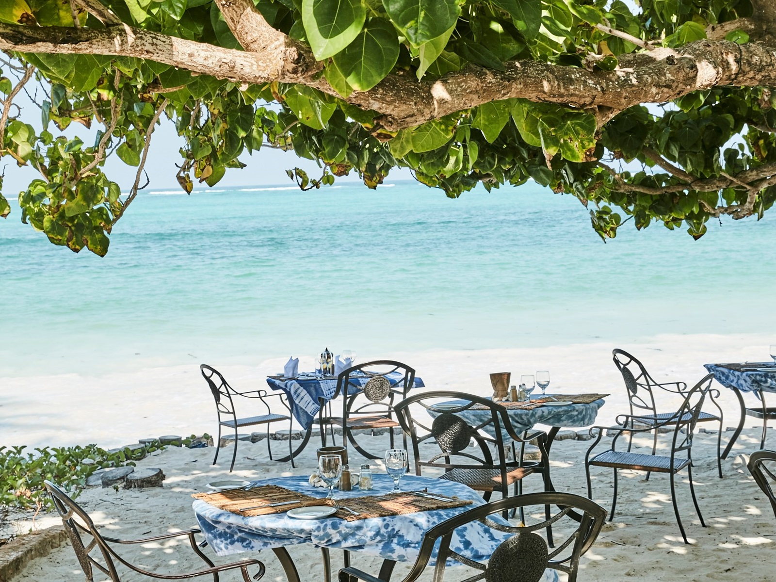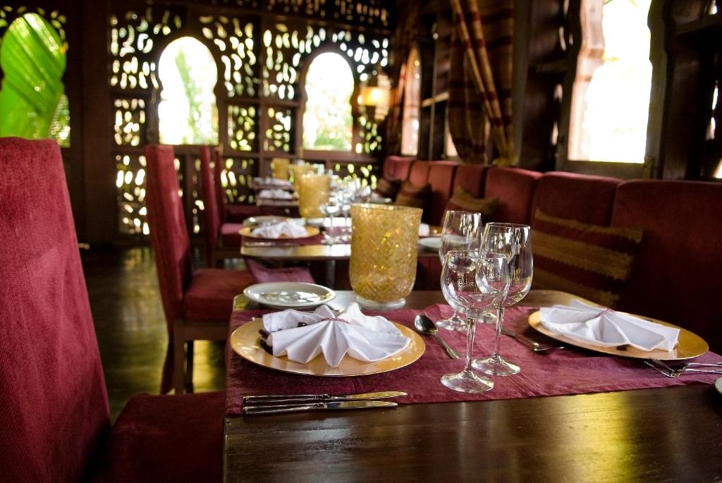 2 restaurants à la carte : 'The Sultans Table' (restaurant sur pilotis, plats aux influences exotiques), 'The Tides' (restaurant intimiste les pieds dans l'eau pour un dîner privé à deux et menu spécial)