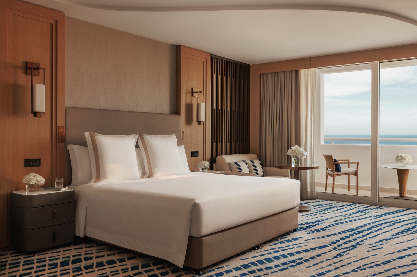 chambres Ocean Club (50 m²) avec fenêtres panoramiques et accès au Club Lounge.