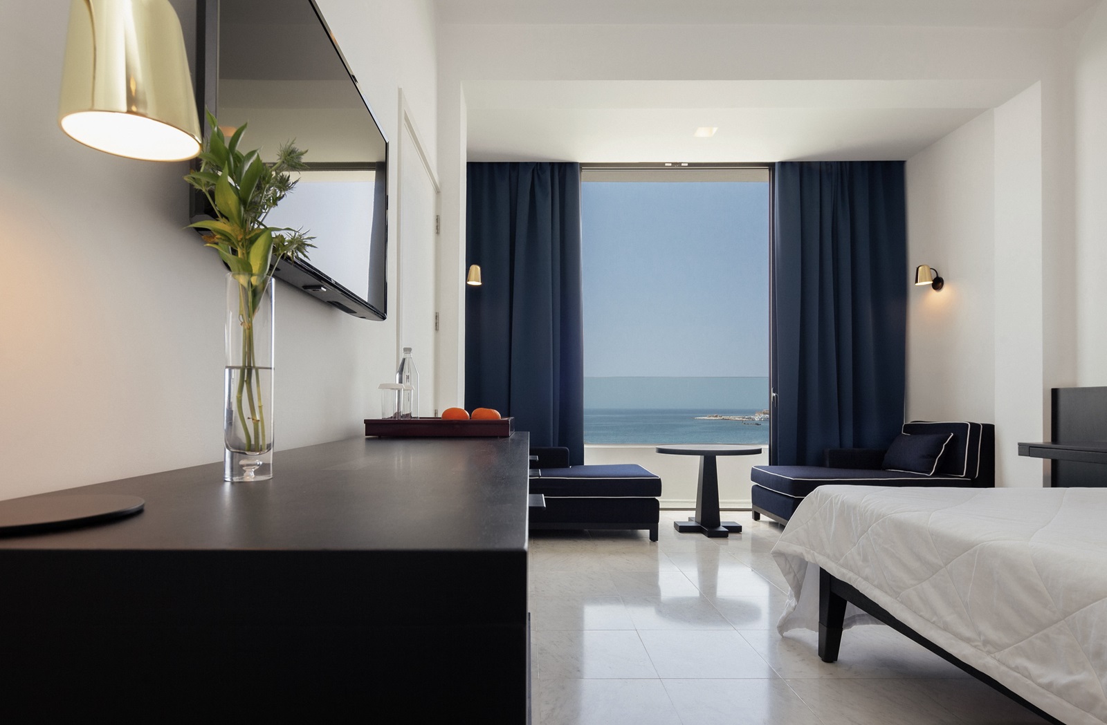 suite 'Kyma' (47 m²) avec séjour/chambre à coucher, terrasse spacieuse et vue mer