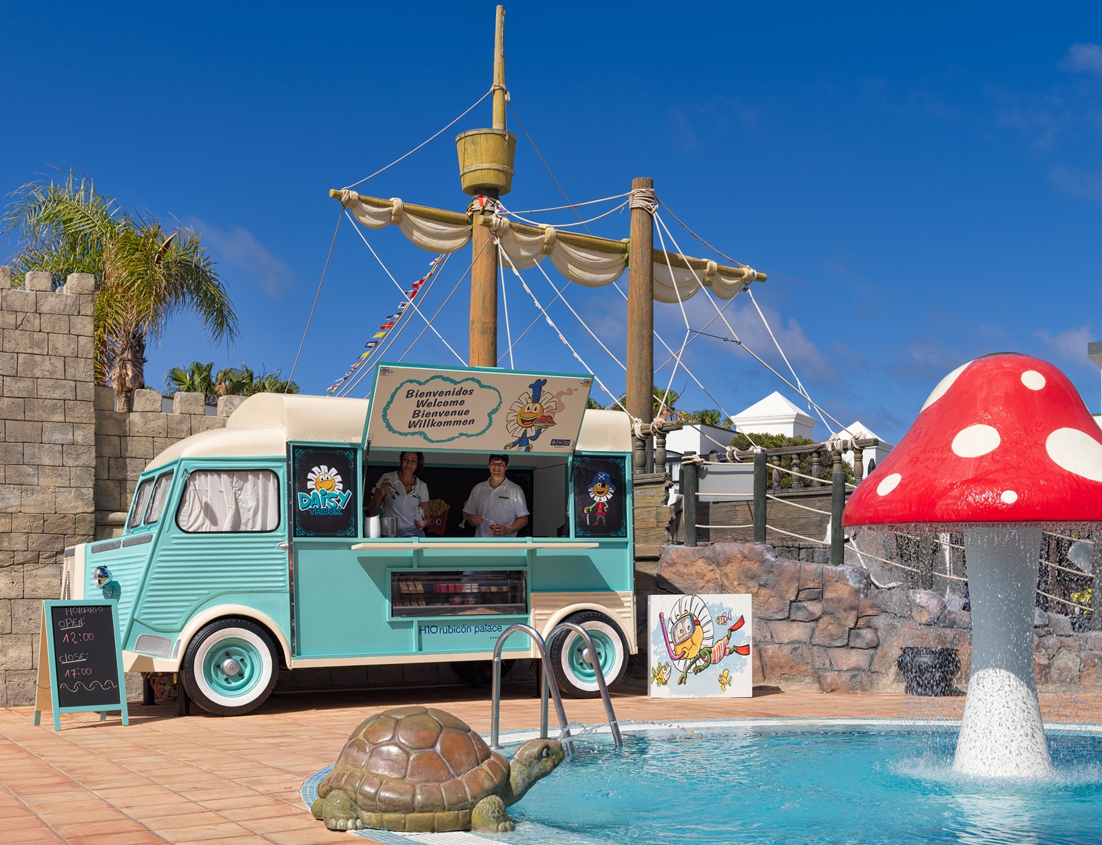 au bar de piscine et au restaurant 'La Choza': fastfood et snacks 12:00-18:00