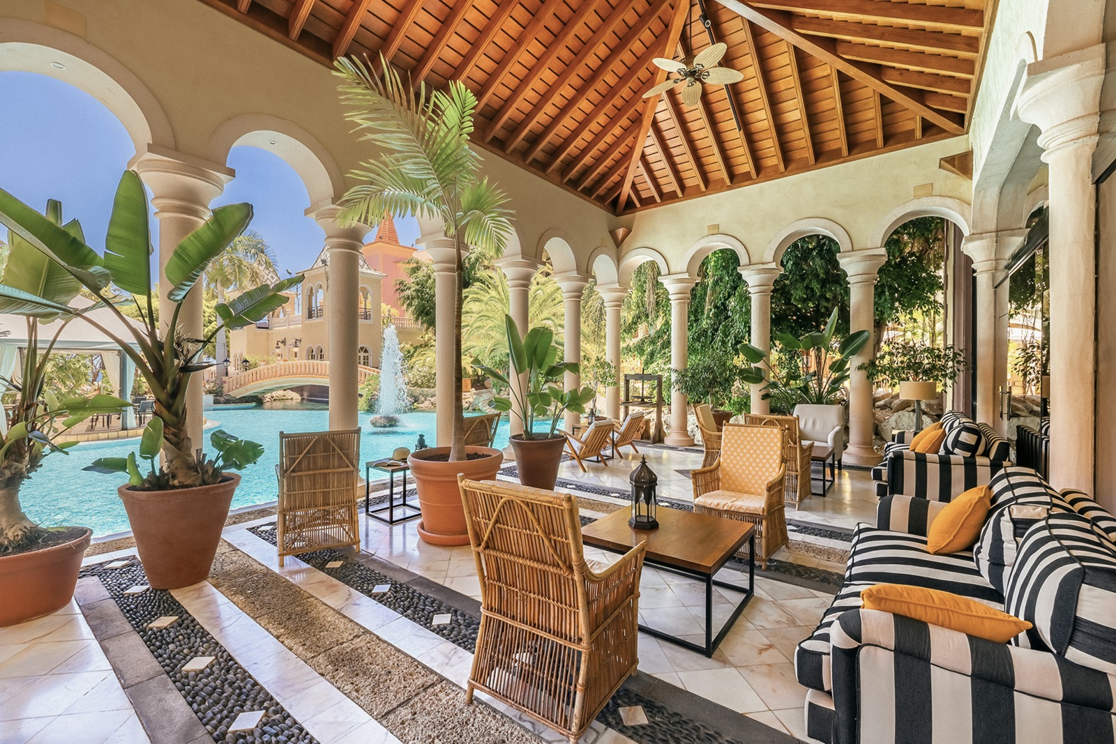 Séjourner dans cet hôtel de luxe, l'un des grands classiques de Ténérife, ce n'est pas seulement passer des vacances, c'est aussi vivre une expérience à part entière. Les chambres sont d'une qualité inégalable, et pourtant les Casas Ducales offrent un petit quelque chose en plus: un excellent service de majordome. Les piscines et les jardins sublimes sont les garants ultimes du repos que vous méritez. Cet hôtel offre une expérience culinaire excellente et ses 8 restaurants à la carte garantissent une variété inédite. Quand le soleil se couche et que toutes les lumières de l'hôtel se mettent à briller doucement, le mot magie prend tout son sens.