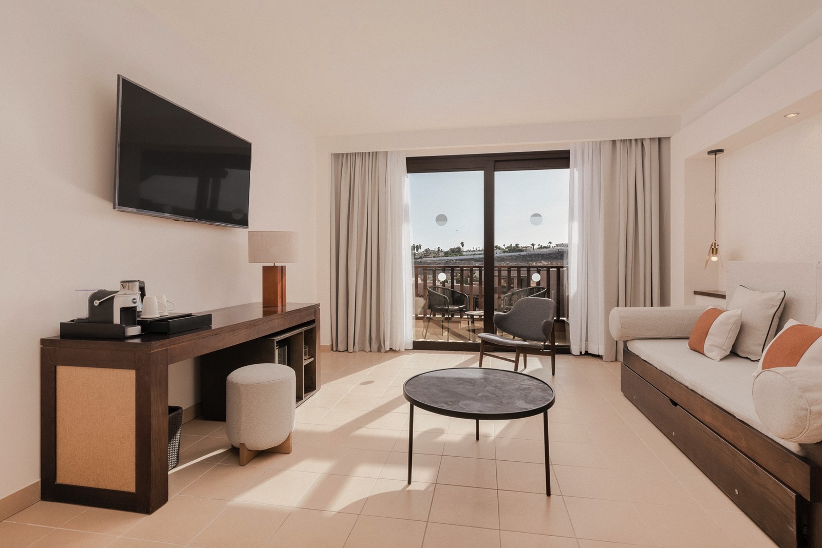 toutes les chambres disposent d'un bain, douche, sèche-cheveux, sorties de bain et pantoufles, téléphone, TV satellite, climatisation, wifi, mini réfrigérateur, coffre-fort, bouilloire, divan-lit, choix d'oreillers (€), fer et planche à repasser (€), balcon meublé ou terrasse