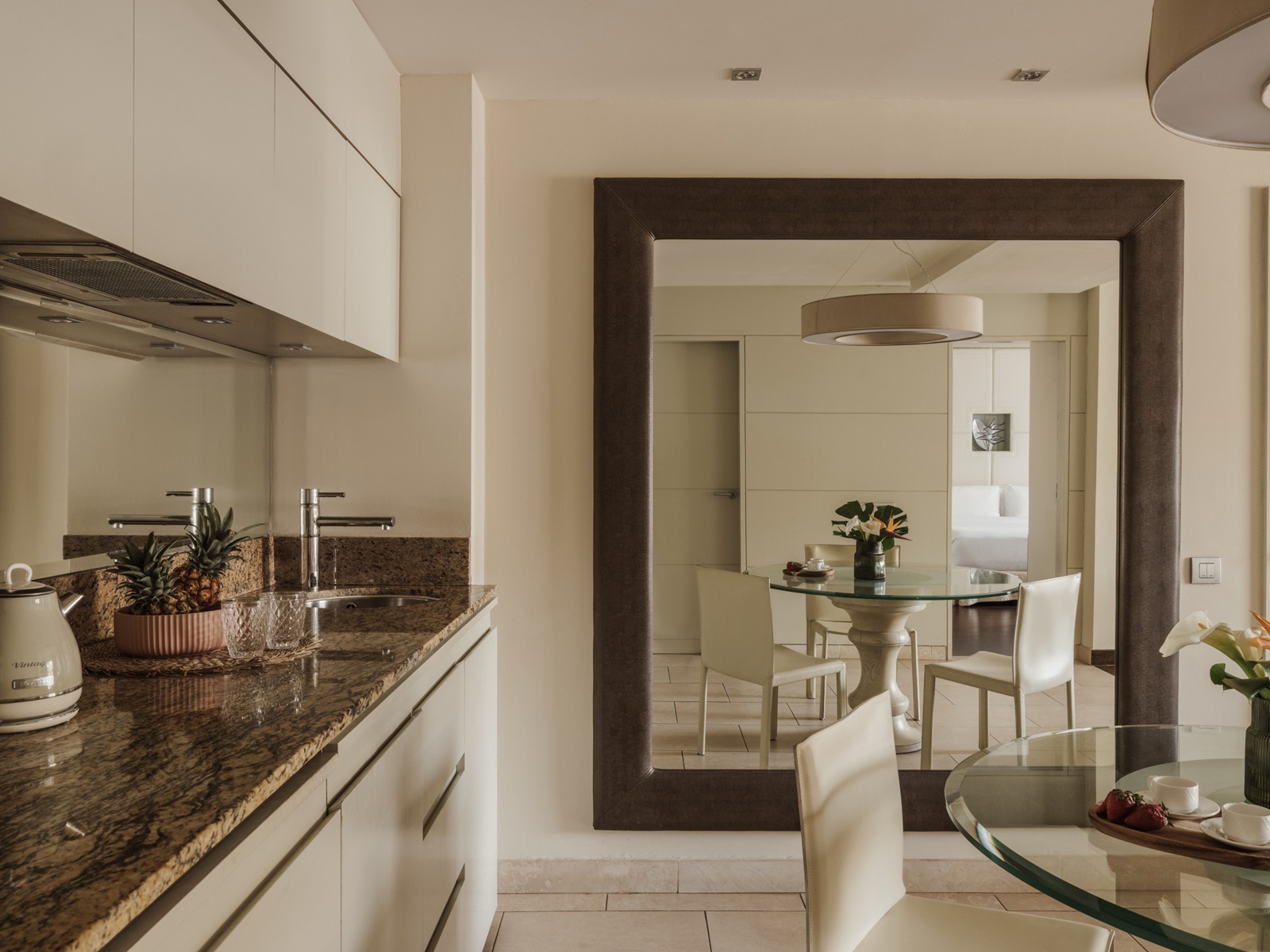 suites (68 m²) avec salon, chambre à coucher séparée et vue jardin