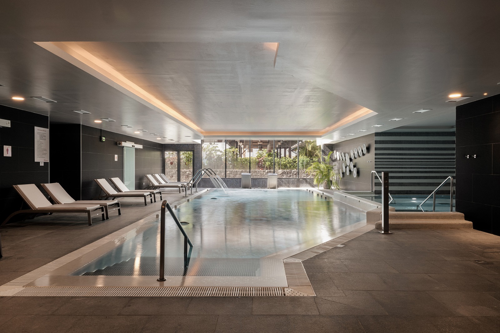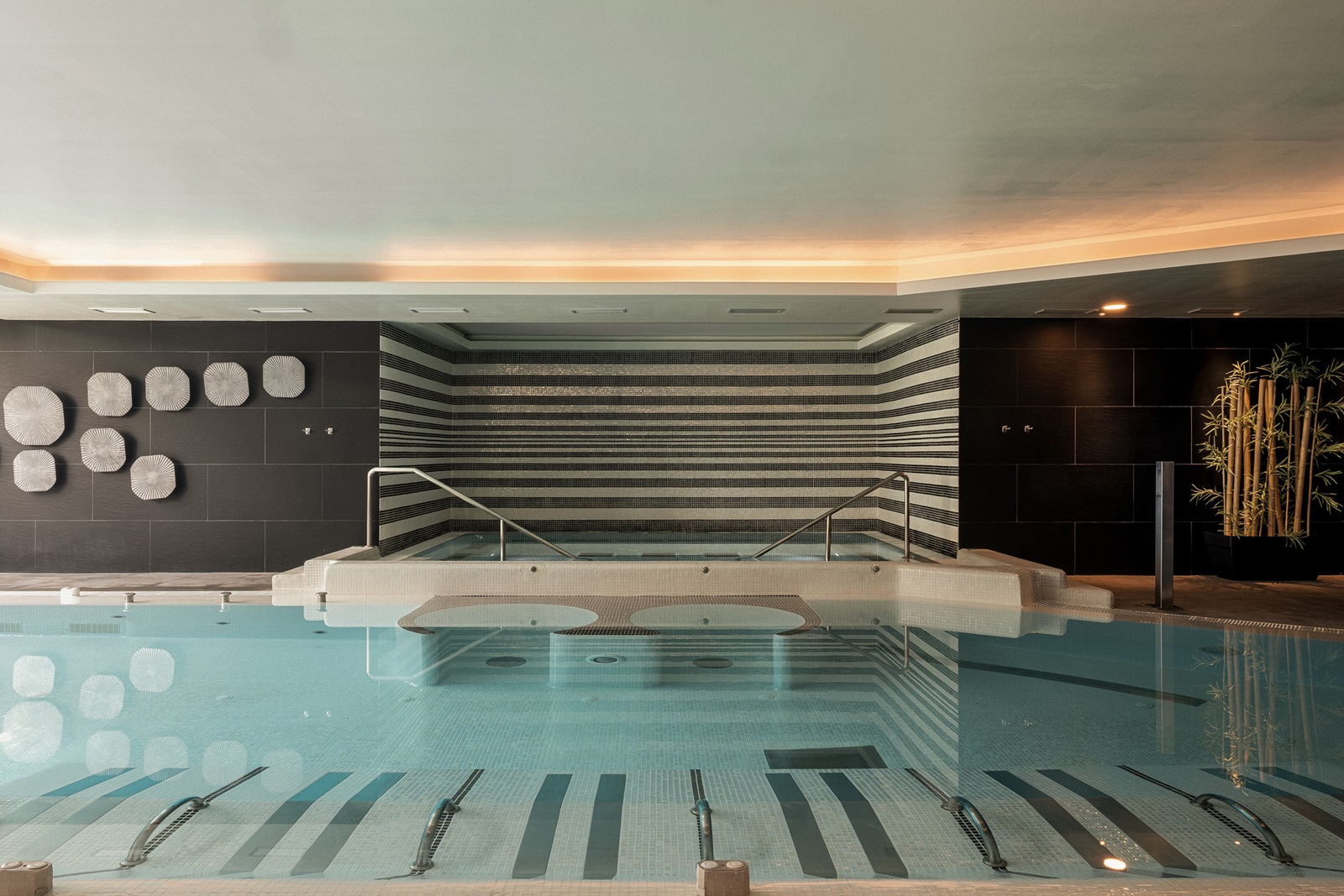 centre de bien-être 'Spa by Clarins': piscine intérieure, bain de vapeur, sauna, bain bouillonnant et différents massages et soins de beauté