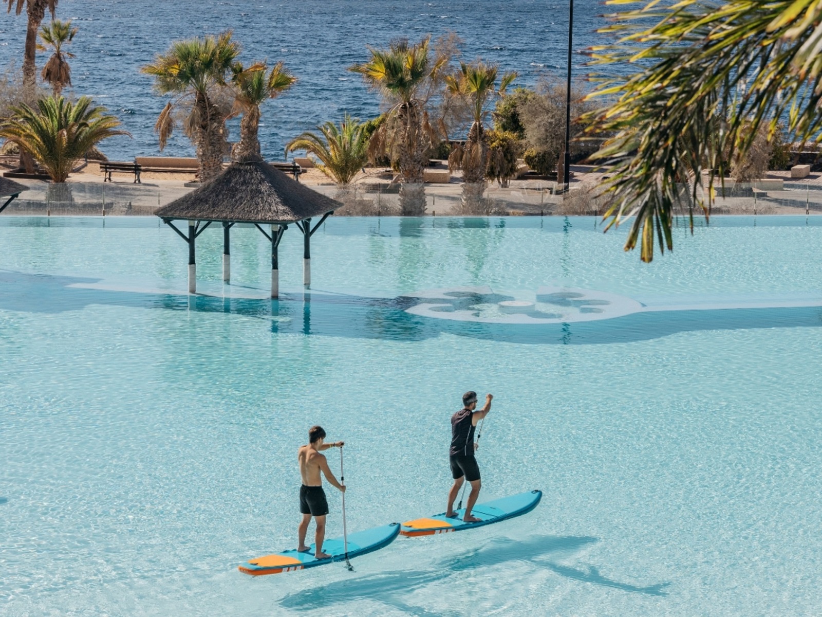 1 infinity pool (eau de mer, 5.000 m² et 260 m de longueur) et 3 piscines d’eau douce chauffées