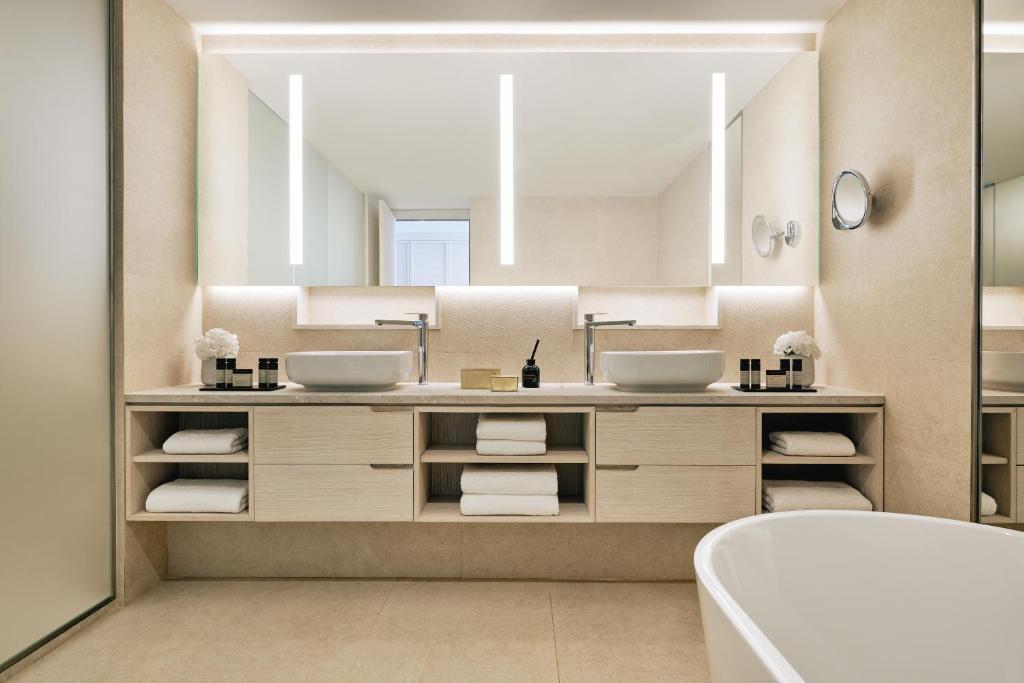 suites de luxe (130 m²) avec salon, 2 chambres à coucher séparées avec balcon et vue mer ou avec terrasse, piscine privée et vue mer
