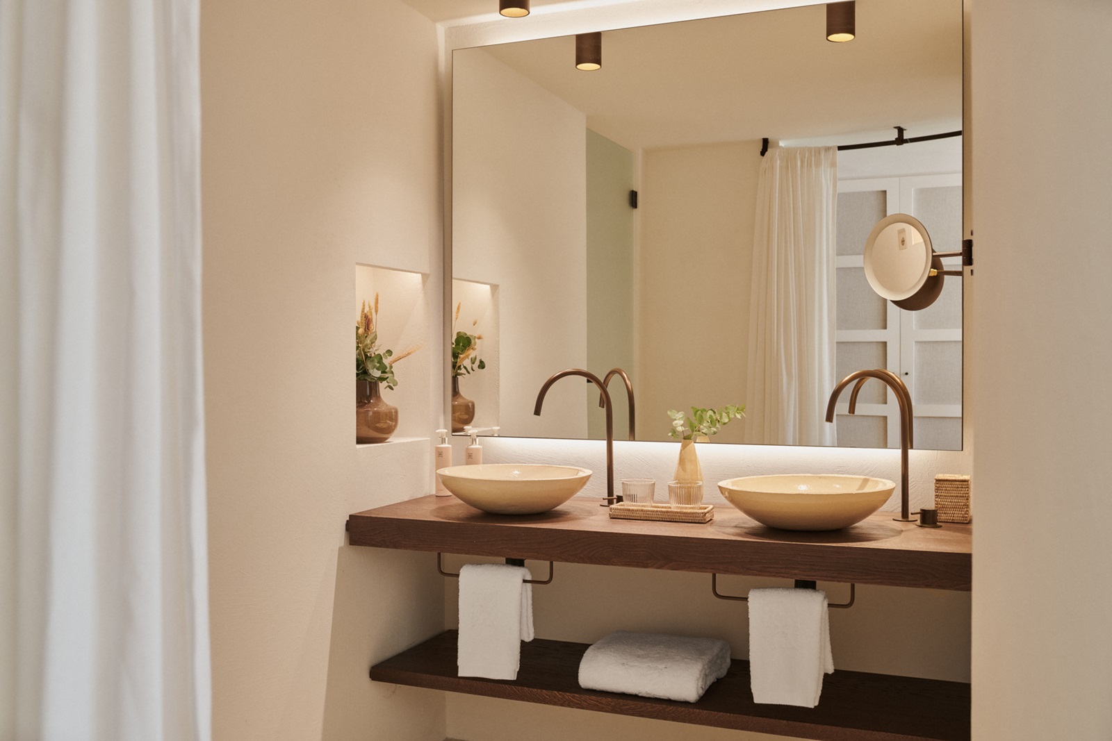 toutes les chambres joliment décorées dans des couleurs chaudes sont un mélange parfait de style moderne avec une touche andalouse et offrent une salle de bain (sèche-cheveux), sortie de bain et pantoufles télévision à écran plat (avec Chromecast), climatisation, coffre-fort, machine Nespresso®, wifi et minibar (€)