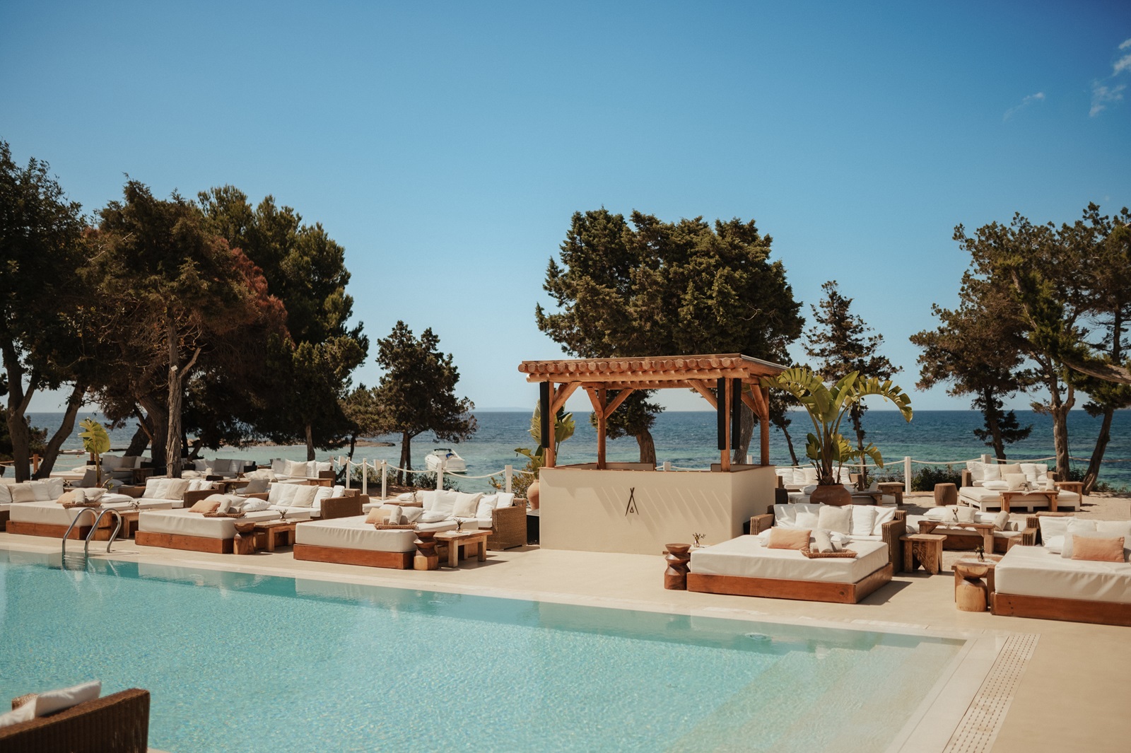 Vous vous délasserez dans un luxueux complexe hôtelier design qui compte parmi les tout derniers joyaux de l’île. Le cadre est somptueux : de votre chambre ou de votre suite au décor minimaliste, vous bénéficierez d’une vue sur la baie d’un bleu profond de Santa Eulalia. La musique est un élément fondamental : de la réception à la zone piscine exclusive, une musique d’ambiance branchée rythmera votre séjour. C’est également le cas sur le toit terrasse à 306°, où vous pourrez déguster des fruits de mer frais au restaurant ou vous évader dans le spa ultramoderne. Et pour qui recherche le petit quelque chose en plus, le Nikki Beach situé juste à côté de l’hôtel est un véritable must.