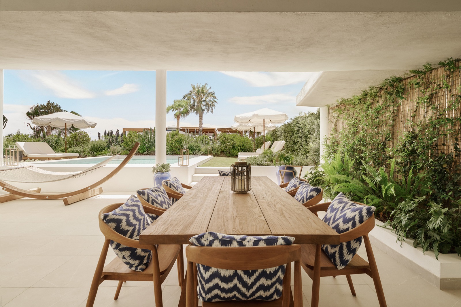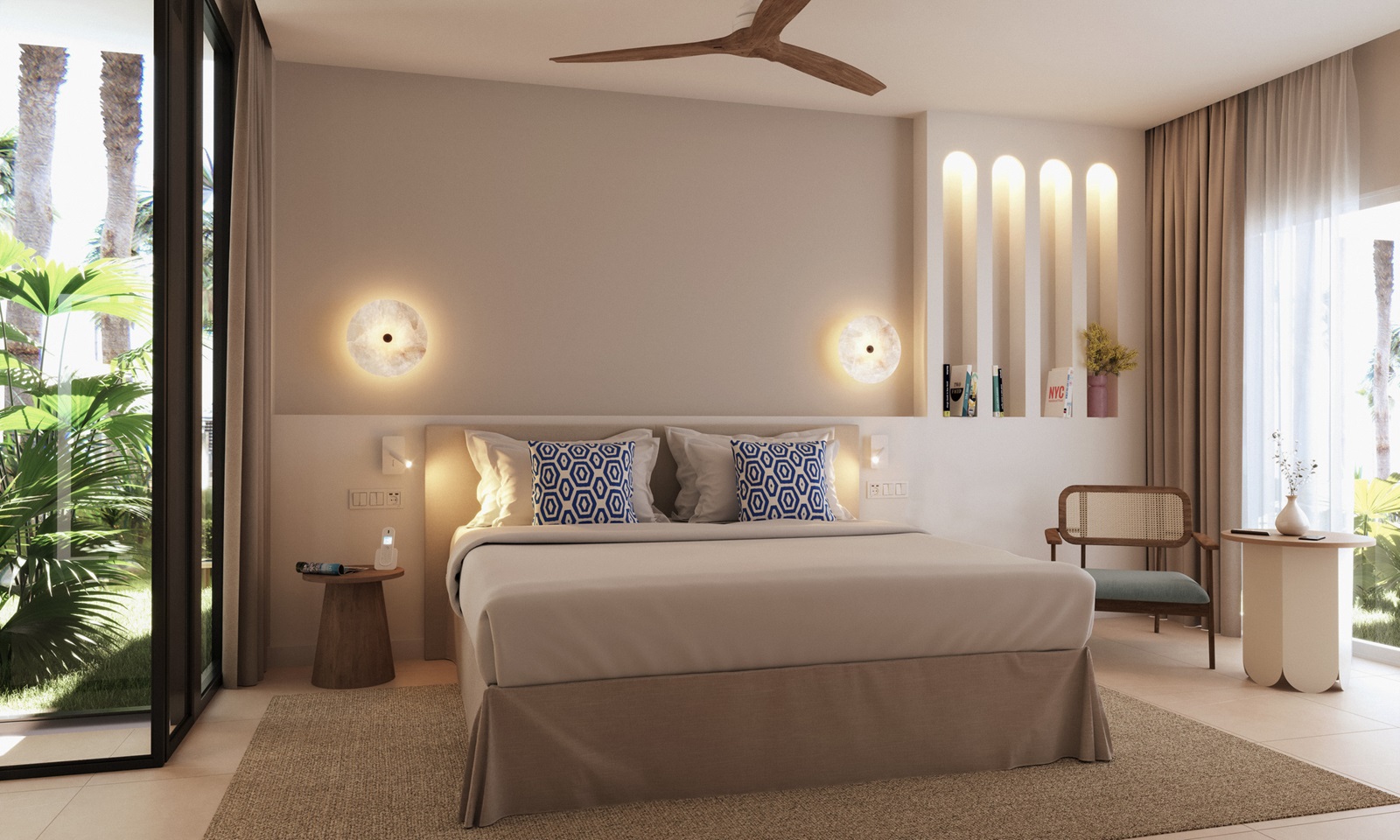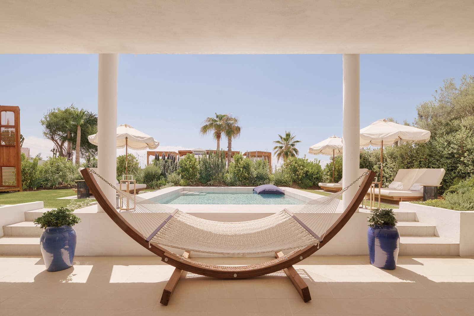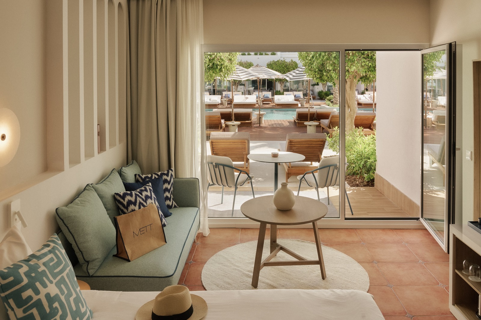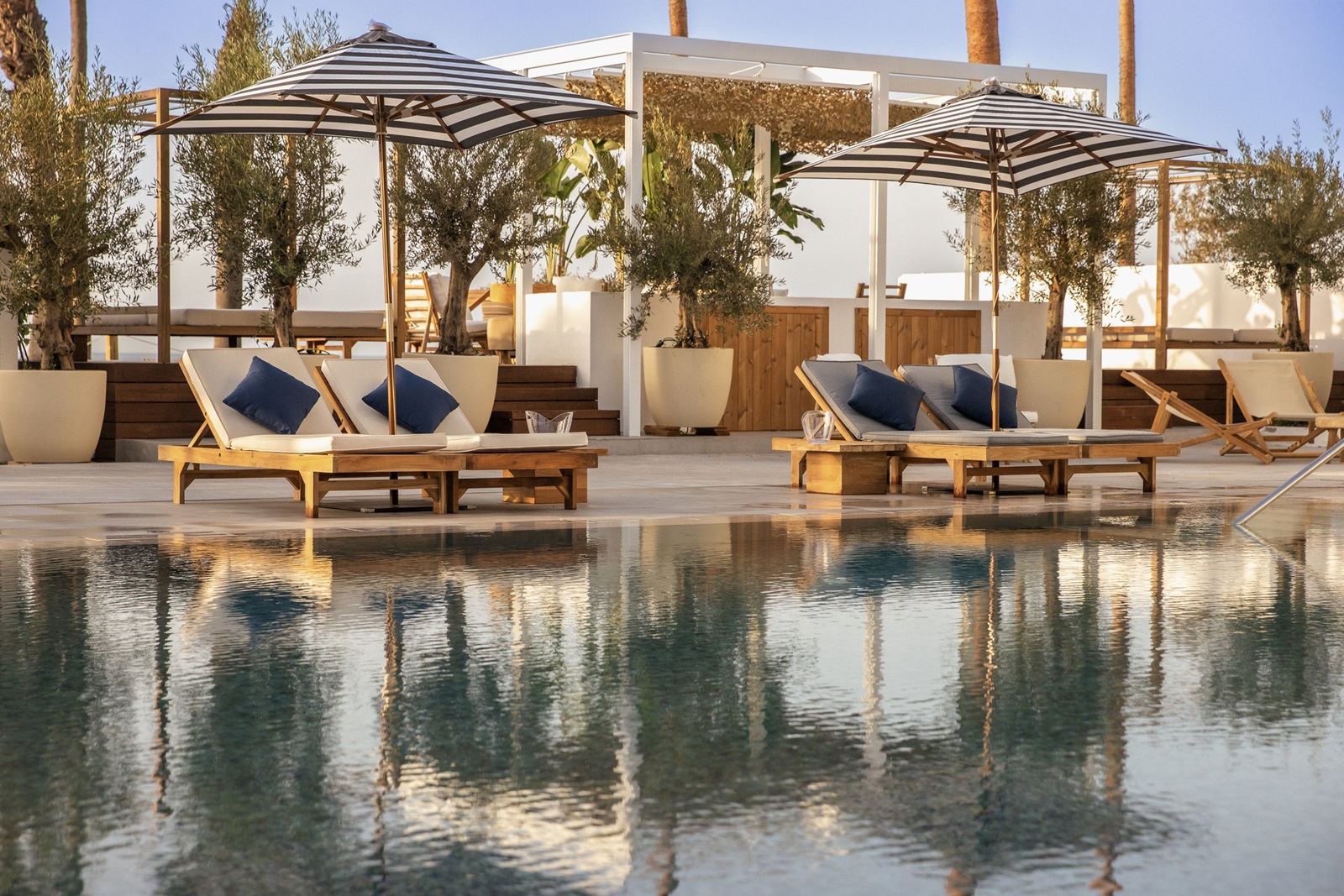 chambres lifestyle pool deluxe (34 m²) situées au rez-de-chaussée avec terrasse et chaises longues et accès direct à la piscine