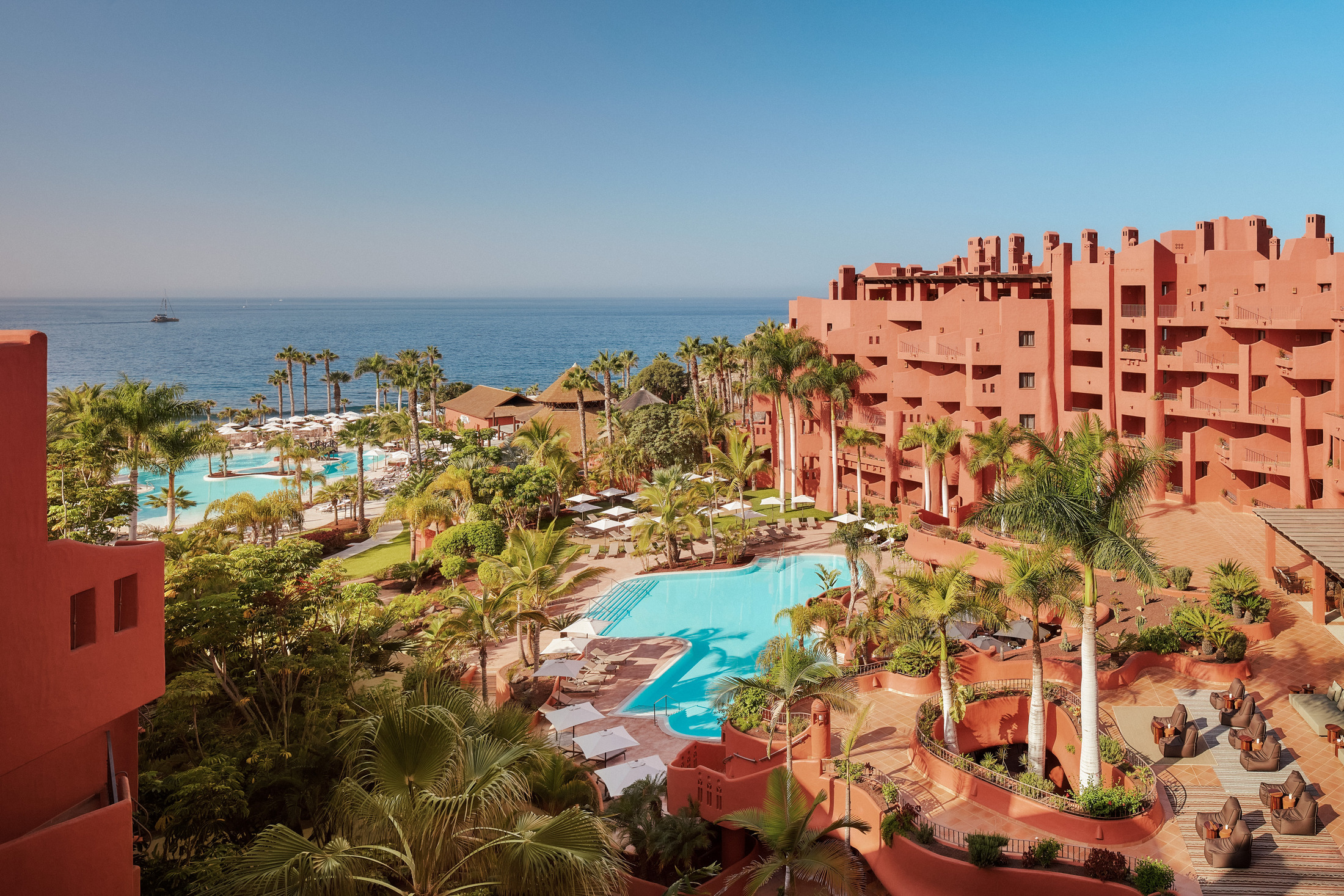 Sur la prestigieuse Costa Adeje, le Tivoli La Caleta Tenerife Resort est un hôtel élégant et luxueux. Conçues dans des tons naturels, les chambres et les suites offrent un confort raffiné. Au milieu de jardins luxuriants, trois piscines chauffées, une île jacuzzi et des bars élégants invitent à des moments de détente insouciants. Sur le plan culinaire, vous ne manquerez de rien. Laissez-vous tenter par les saveurs internationales dans le restaurant Gusto, ou découvrez l'univers sophistiqué dans le restaurants Yakuza et le SEEN Beach Club, deux restaurants dirigés par le chef renommé Olivier da Costa. Pour ceux qui aiment rester actifs, l'hôtel dispose de deux courts de padel, dont un court officiel du World Padel Tour, et d'un centre de remise en forme moderne. Le serein spa Anantara vous offrira un calme absolu et vous permettra de vous faire dorloter.