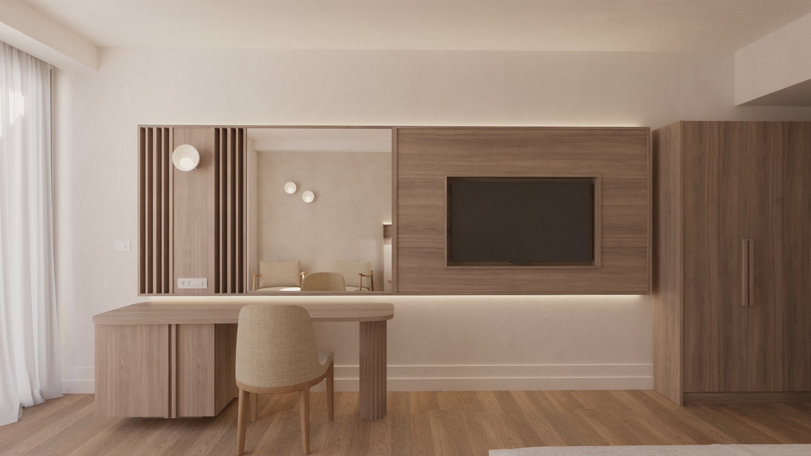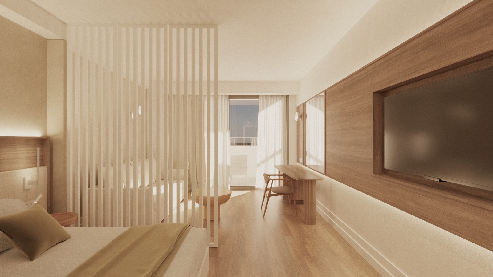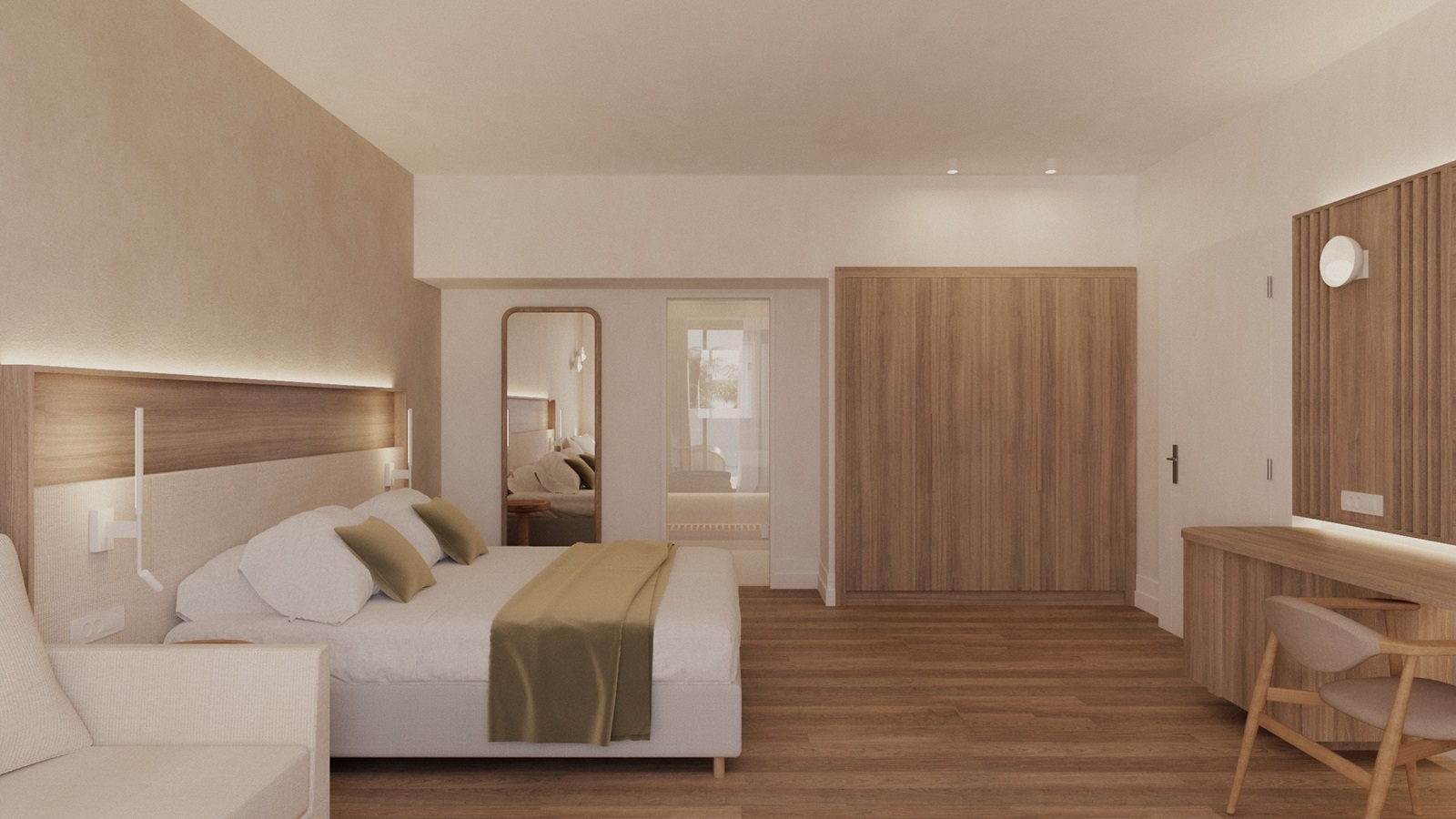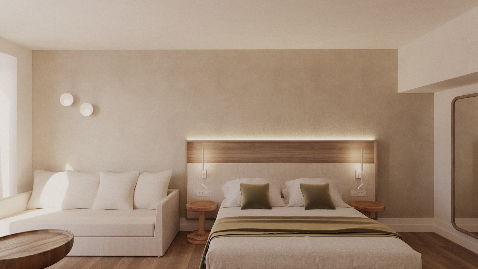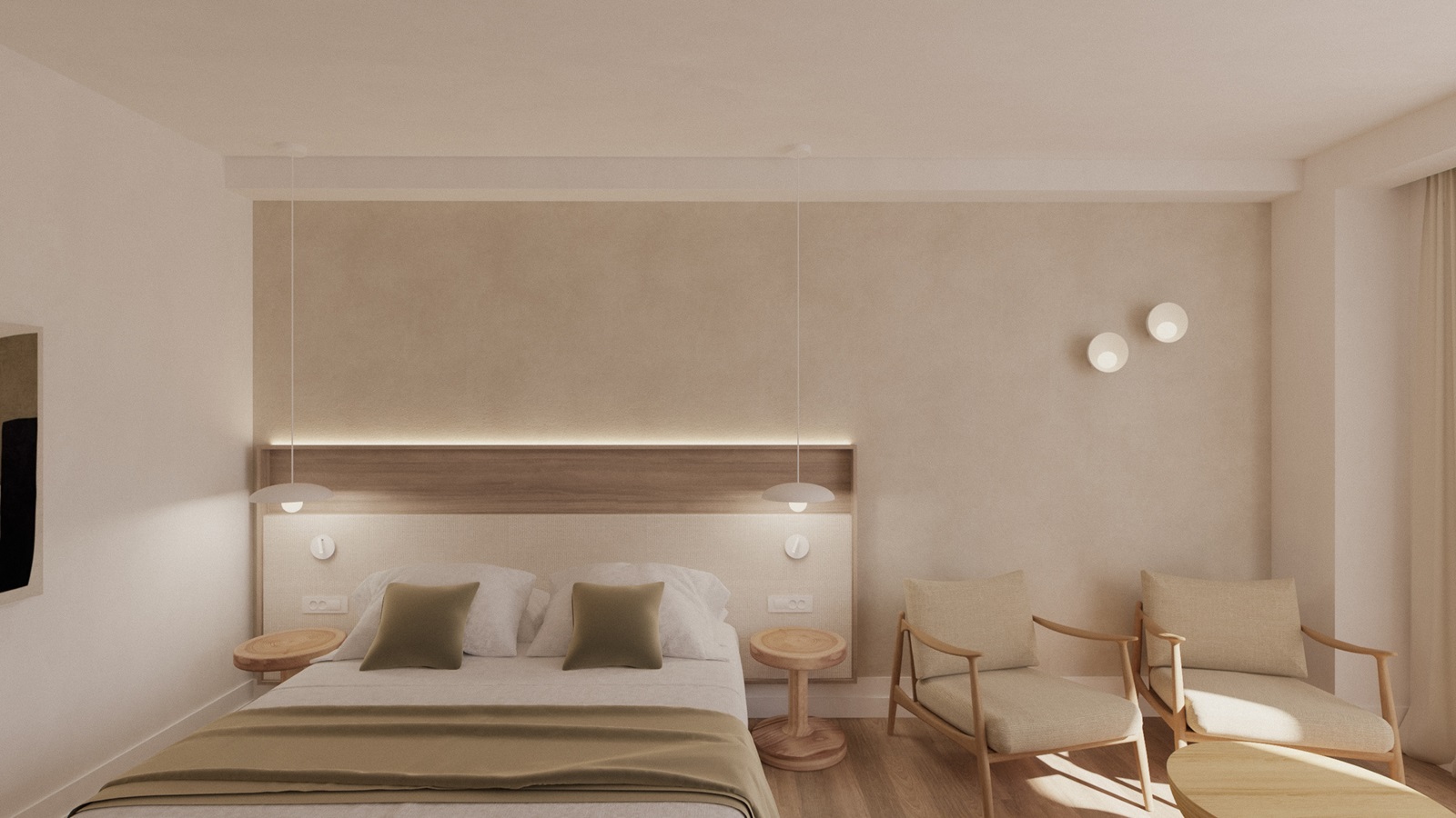 toutes les chambres rénovées et plus contemporaines disposent d'une salle de bain en marbre (douche à l'italienne, sèche-cheveux), coin salon, télévision à écran plat, hub média, climatisation, coffre-fort, machine Nespresso, wifi (gratuit), minibar (€) et balcon ou terrasse