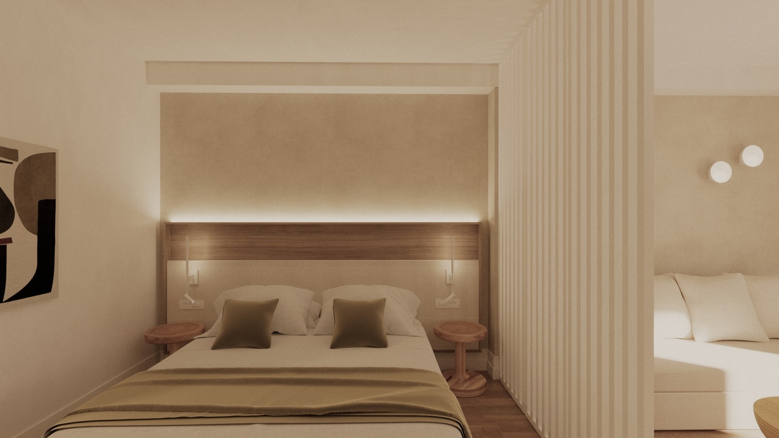 chambres familiales (40 m²) avec coin salon semi-ouvert (avec 2 canapés-lits)