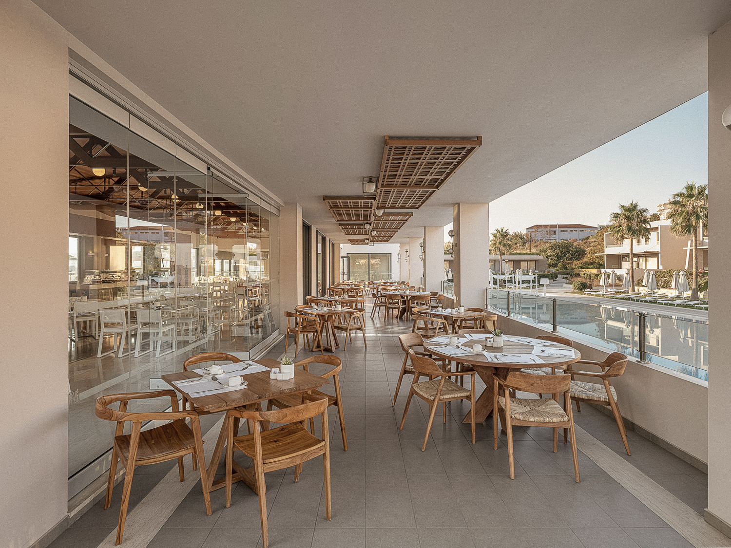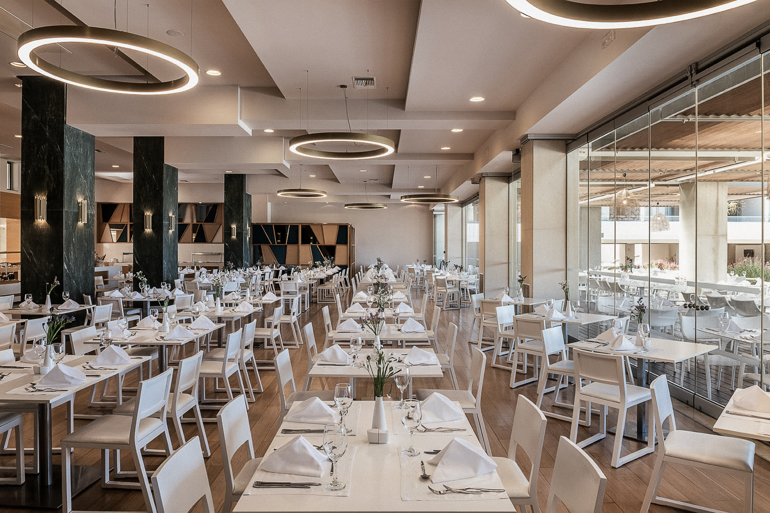 3 restaurants à la carte : ‘Blue Dong’ (cuisine asiatique, dîner), restaurant magnifique et intime ‘Al Fresco Trattoria’ avec une belle terrasse au bord de la piscine (italien, déjeuner et dîner) et l'accueillant restaurant de plage ‘Avra Seaside Bar & Restaurant’ (spécialités grecques et méditerranéennes, déjeuner et dîner)