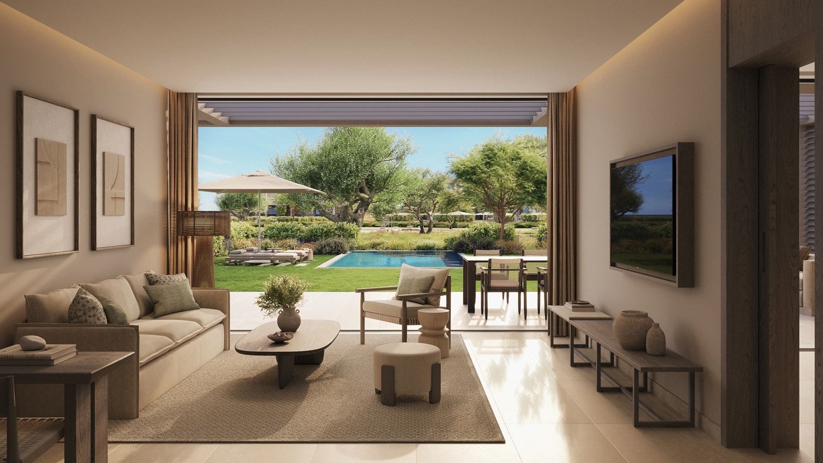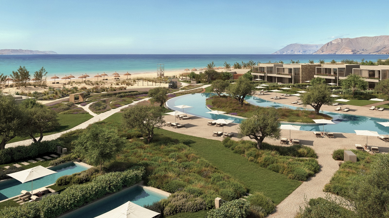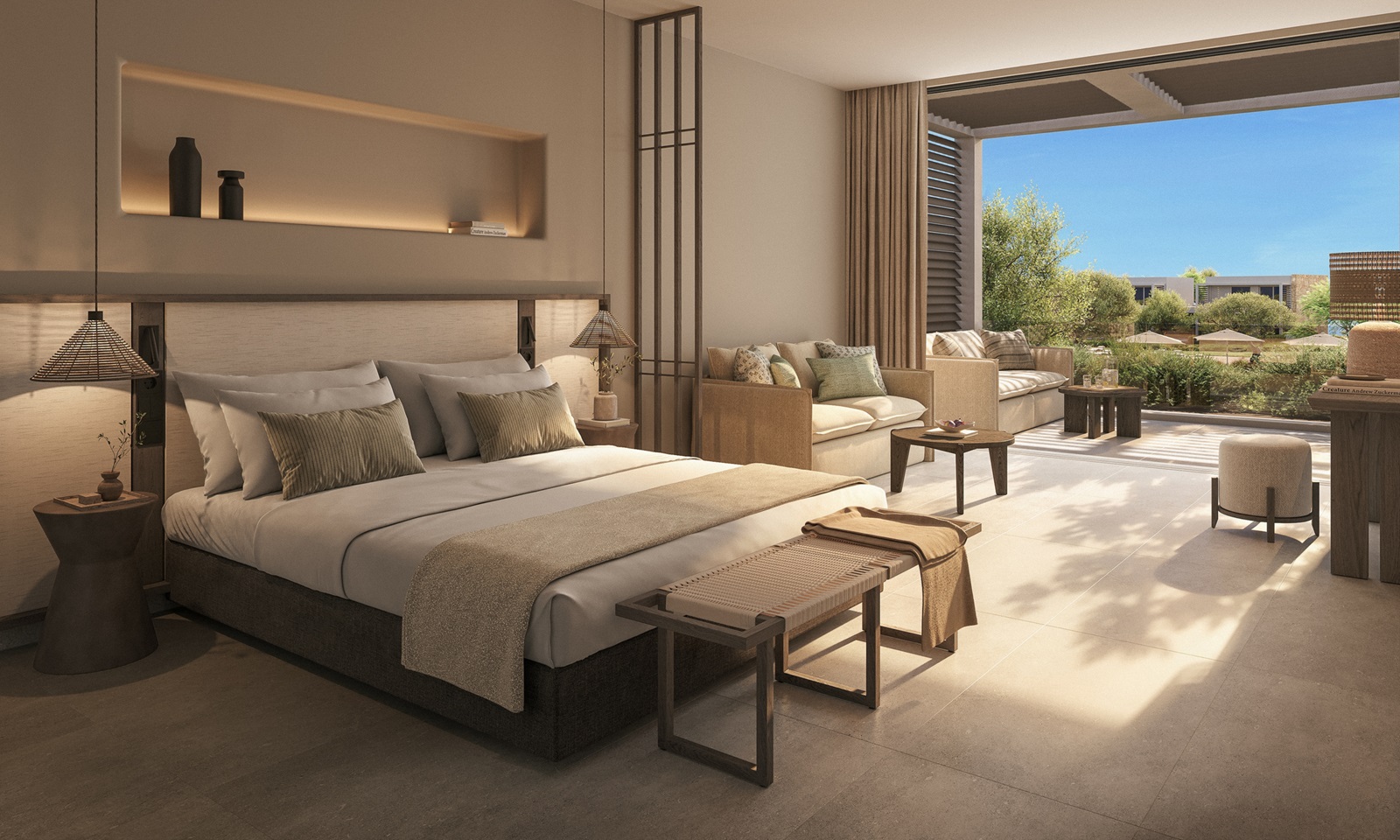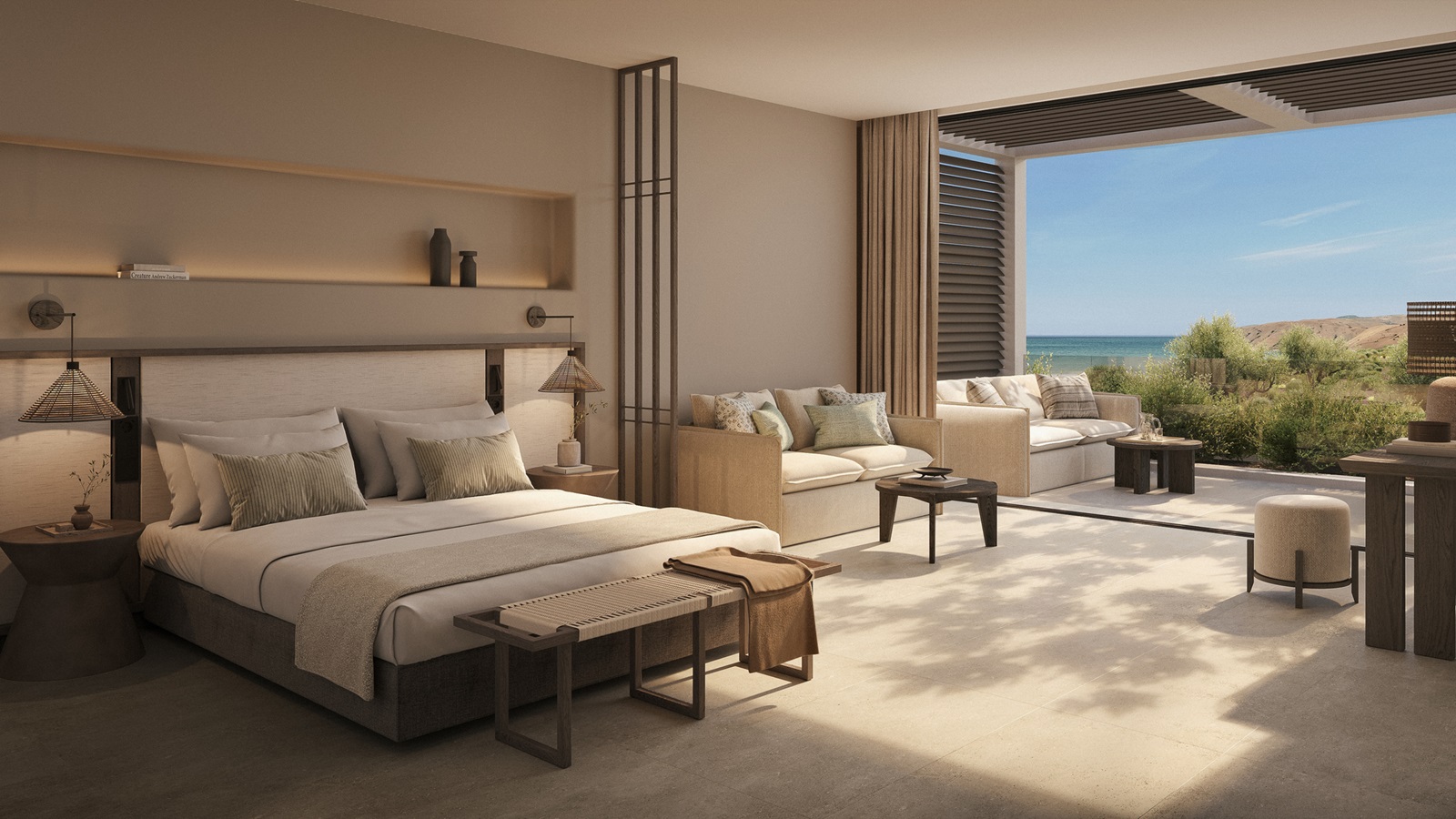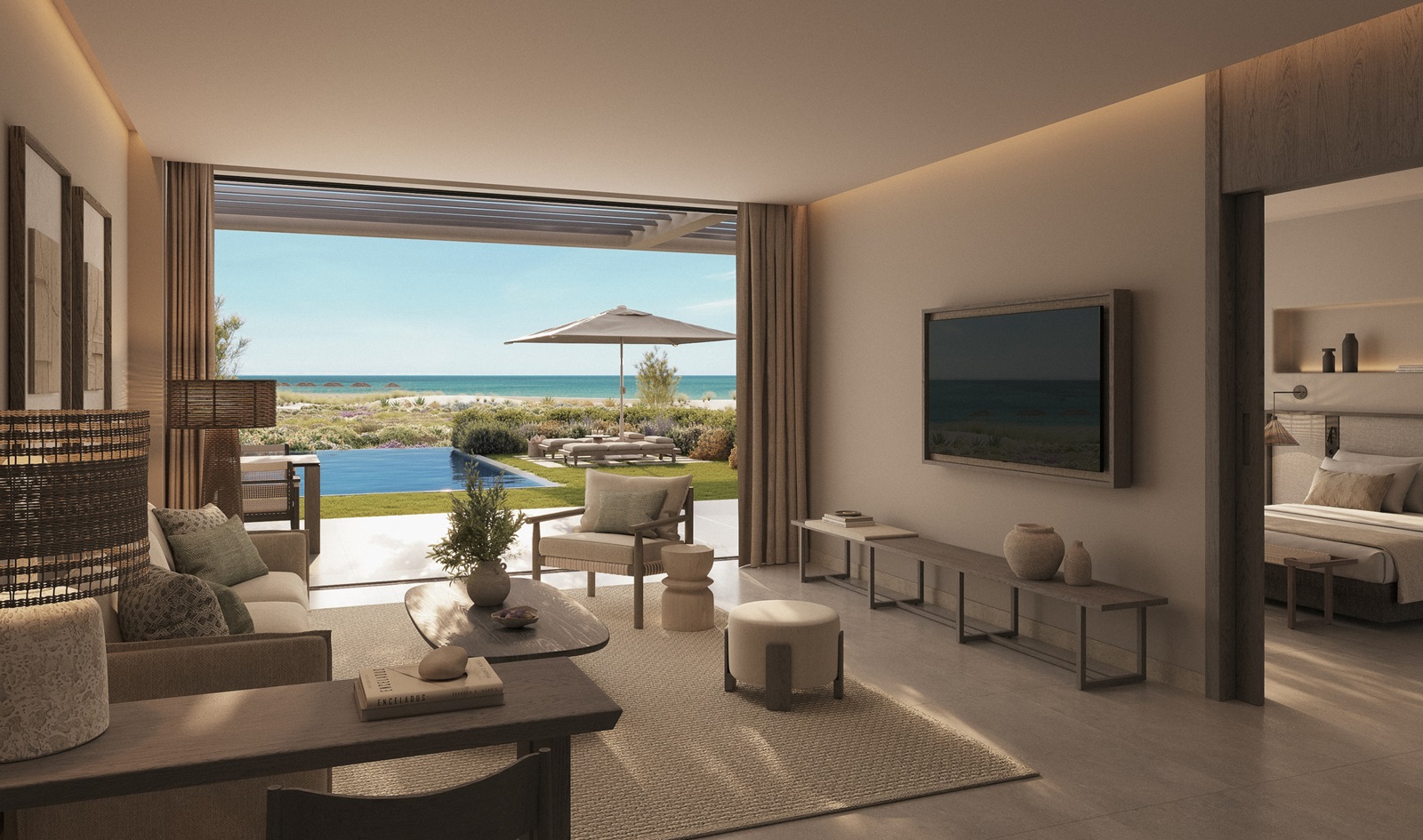 suites de luxe (182 m²) avec salon, 3 chambres à coucher séparées, piscine privée et vue mer latérale