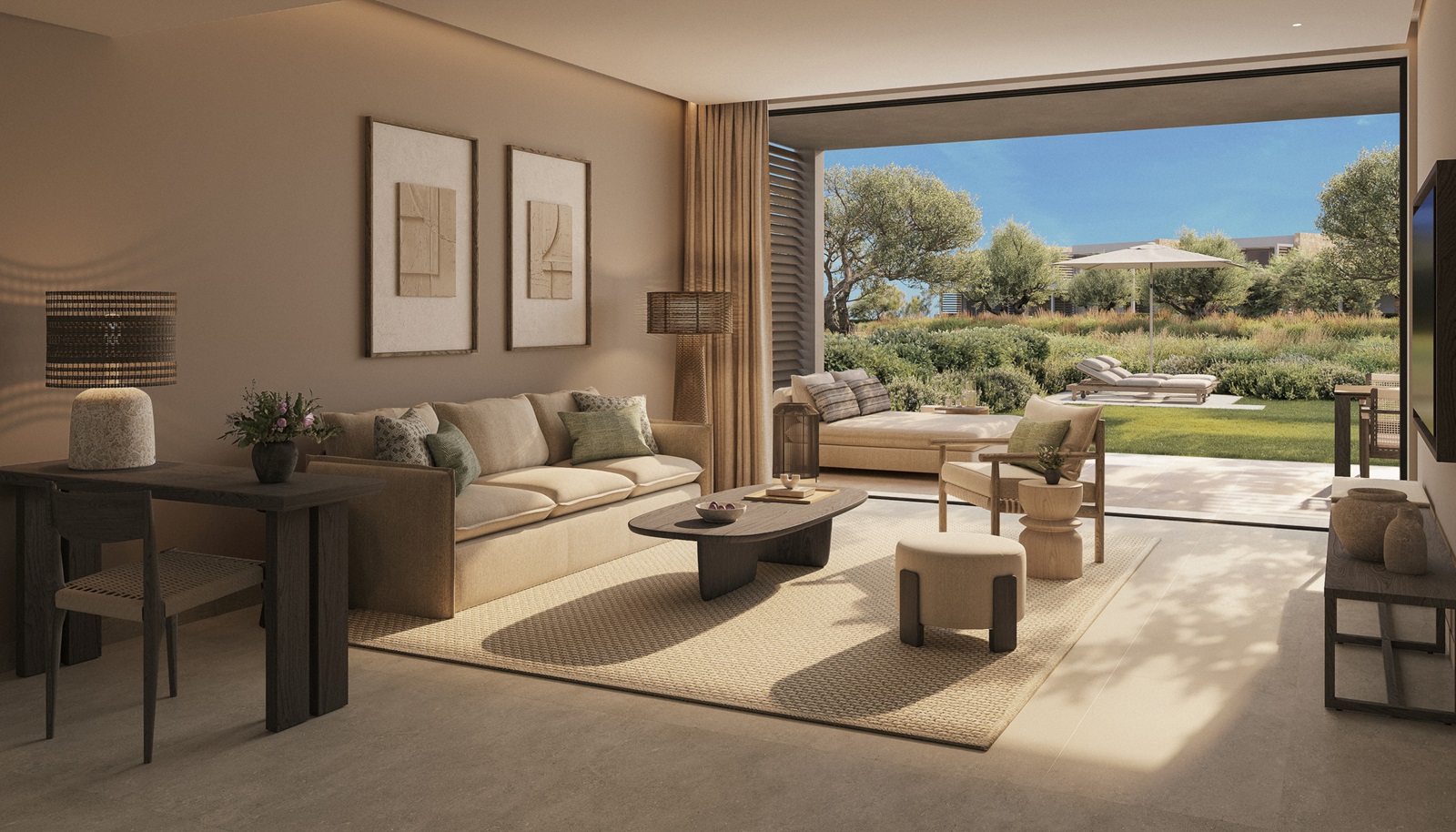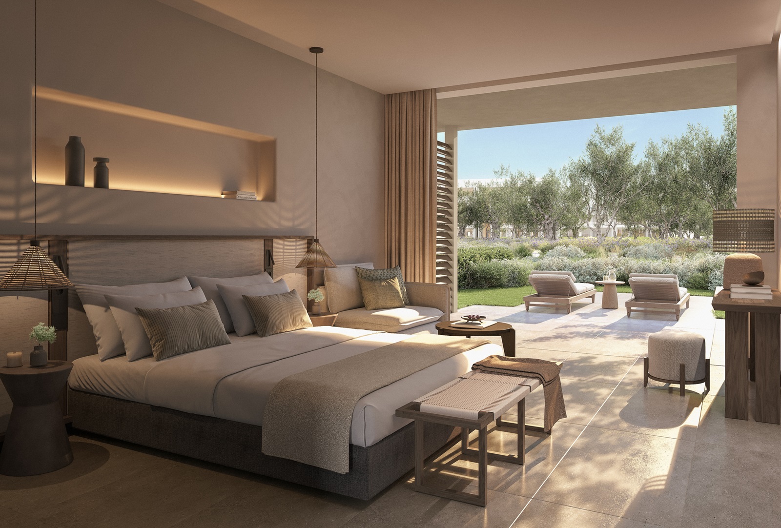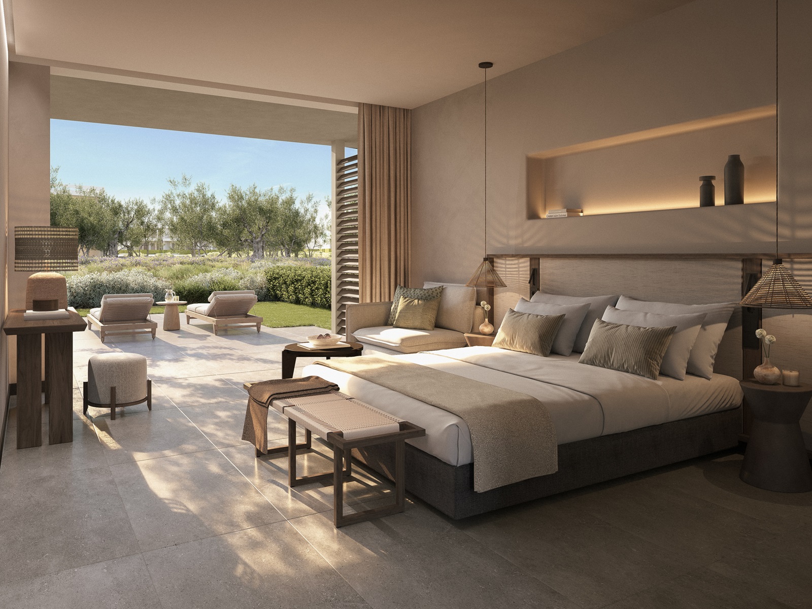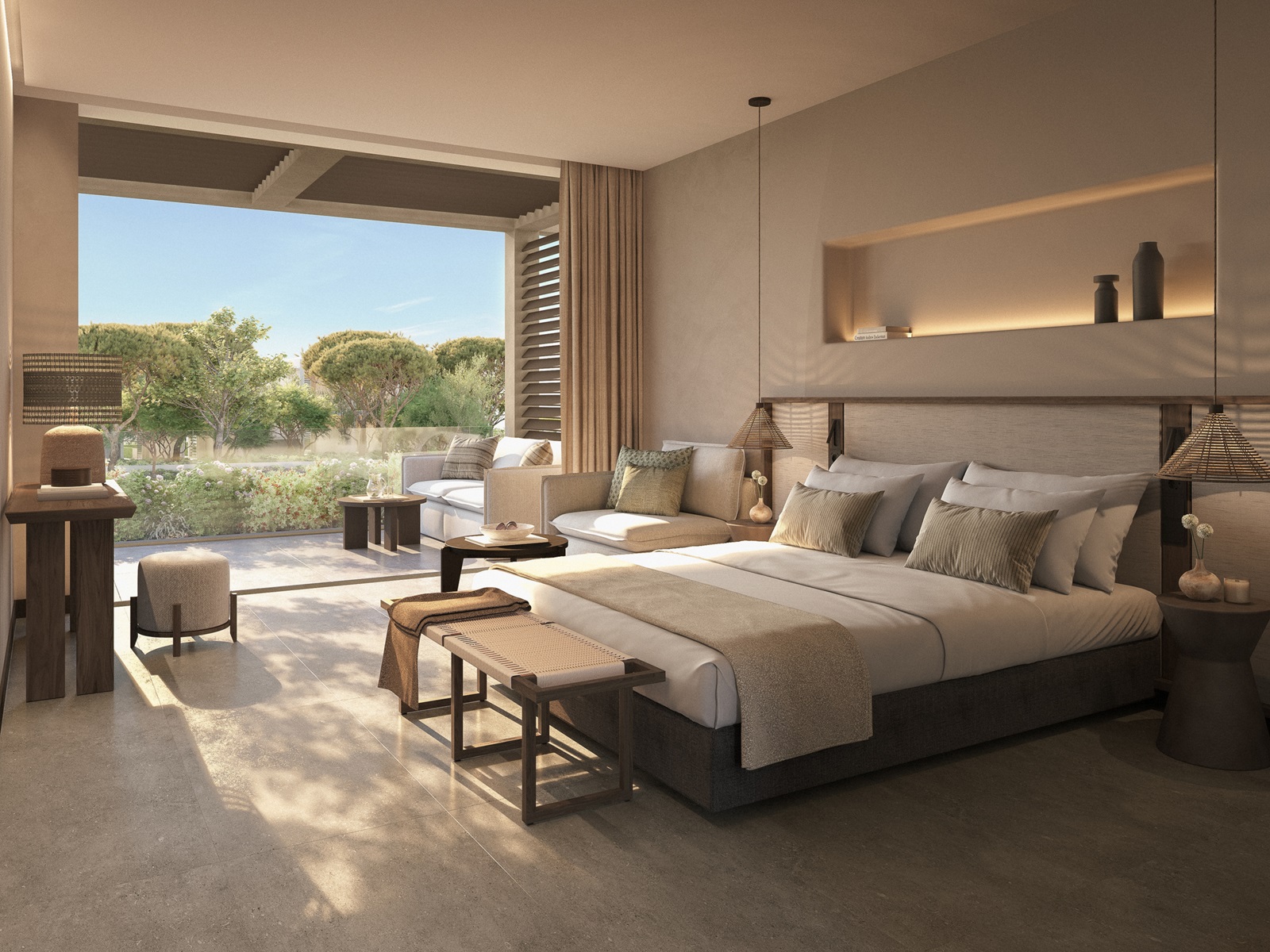 suites de luxe (90 m²) avec salon, chambre à coucher séparée, jardin privé, vue jardin ou vue mer latérale