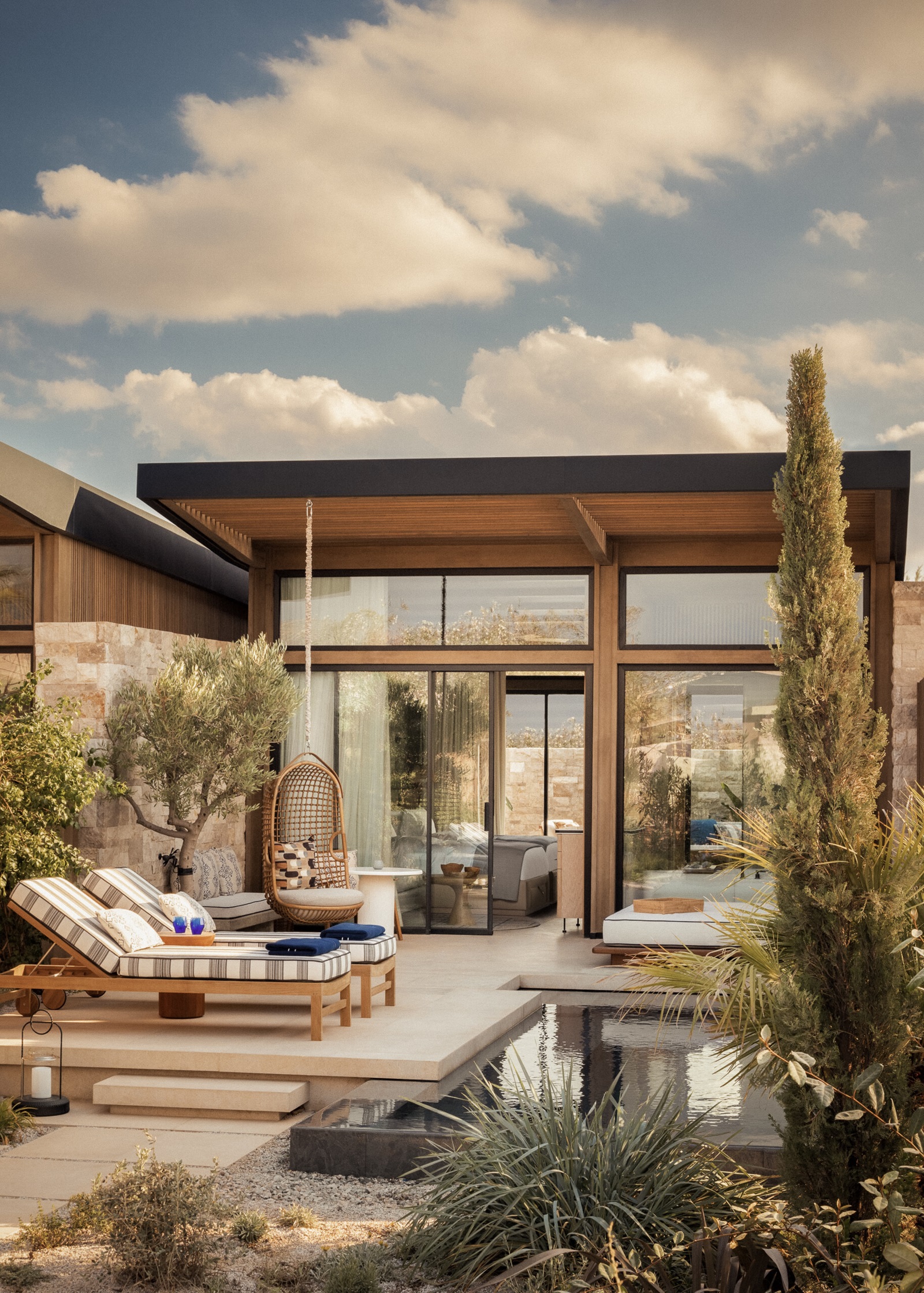 Suites Epos à 1 chambre (69 m² + 50 m² d'espace extérieur) avec chambre séparée, salon, kitchenette et terrasse avec piscine privée