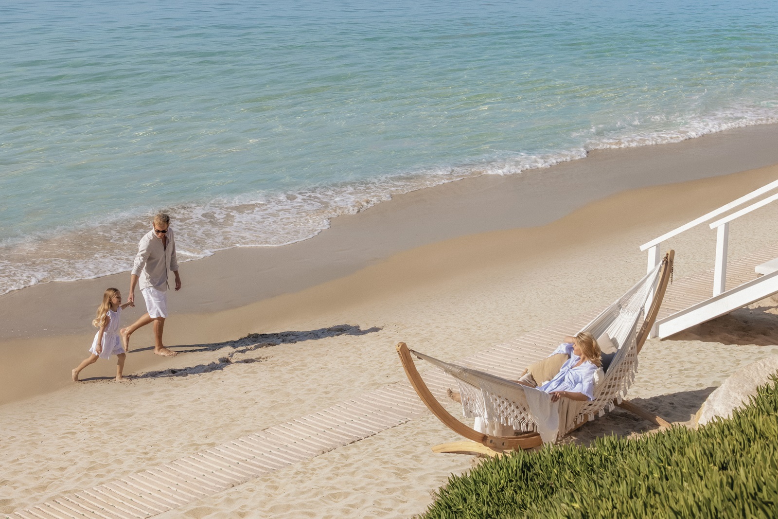 suites familiales (105 m²) avec séjour, 2 chambres à coucher séparées, 2 salles de bains, jardin privé et accès direct à la plage