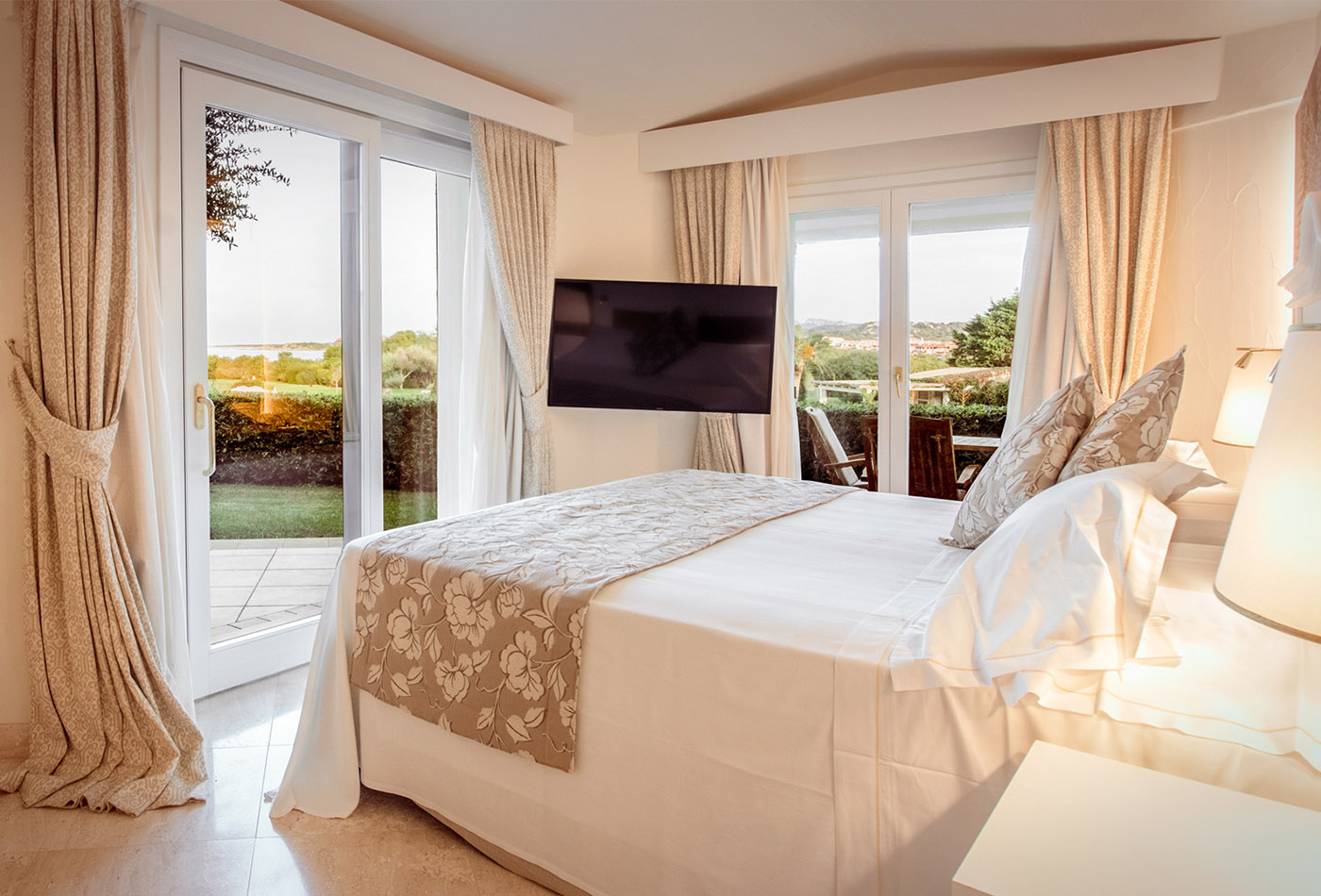 suites junior (40-45 m²) avec coin salon ouvert et spacieux et balcon avec vue mer ou terrasse avec accès au jardin