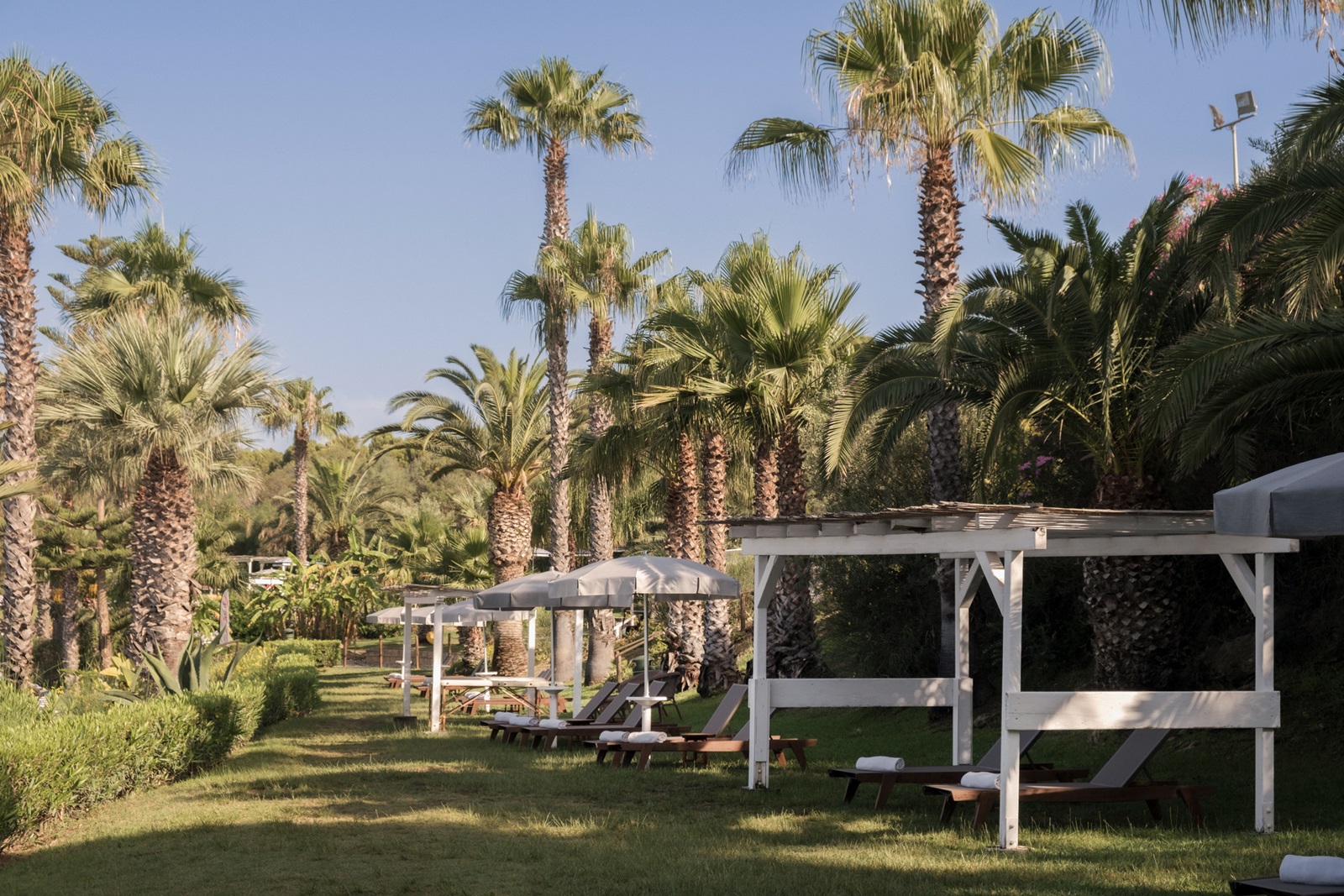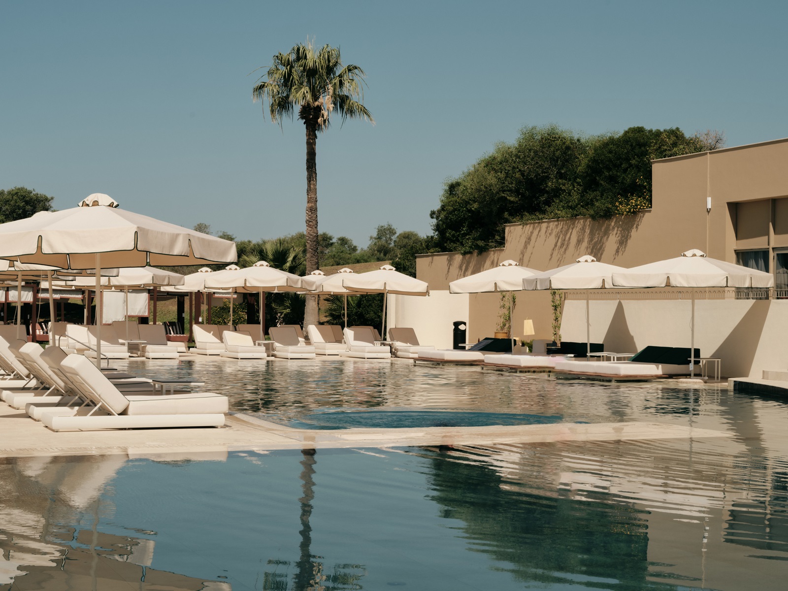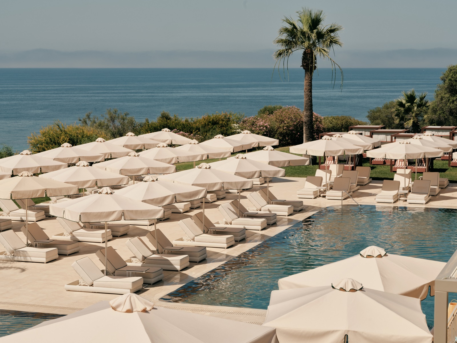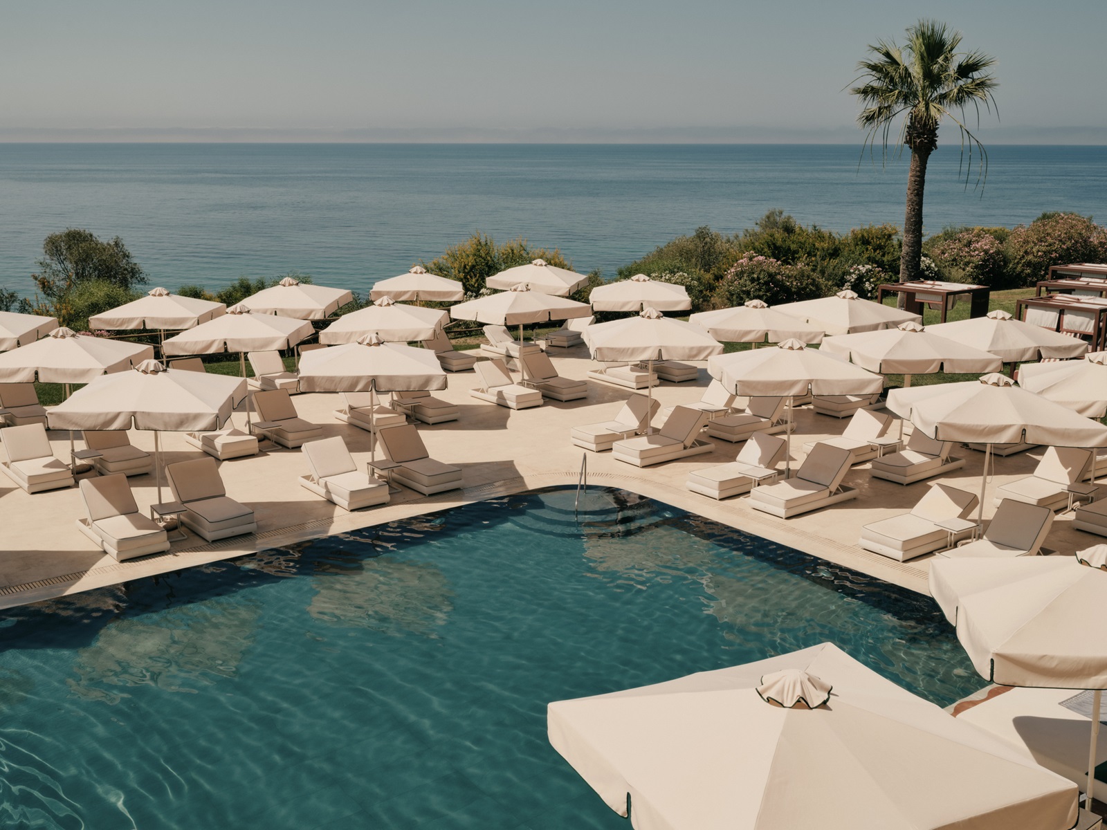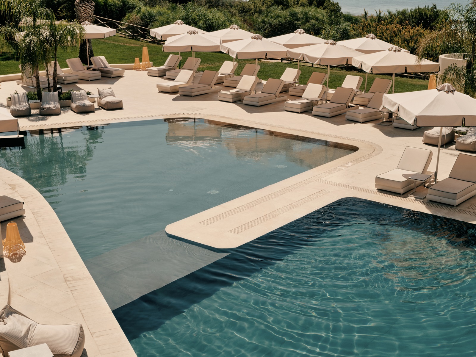 transats et parasolsà la piscine et la plage