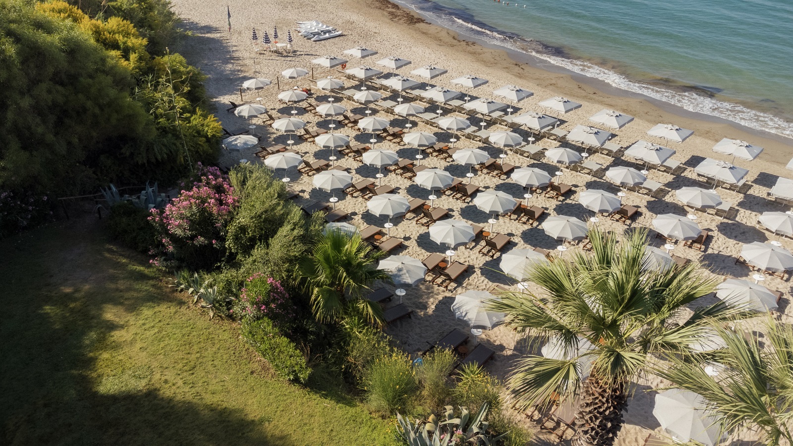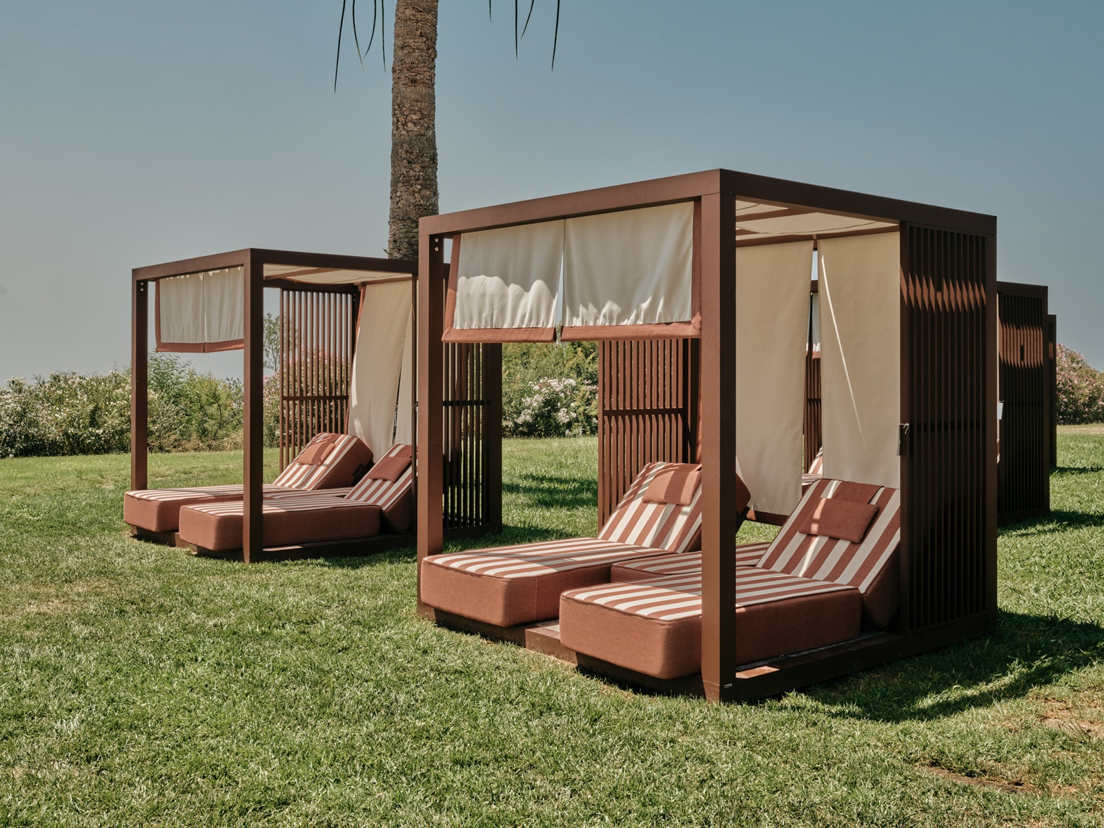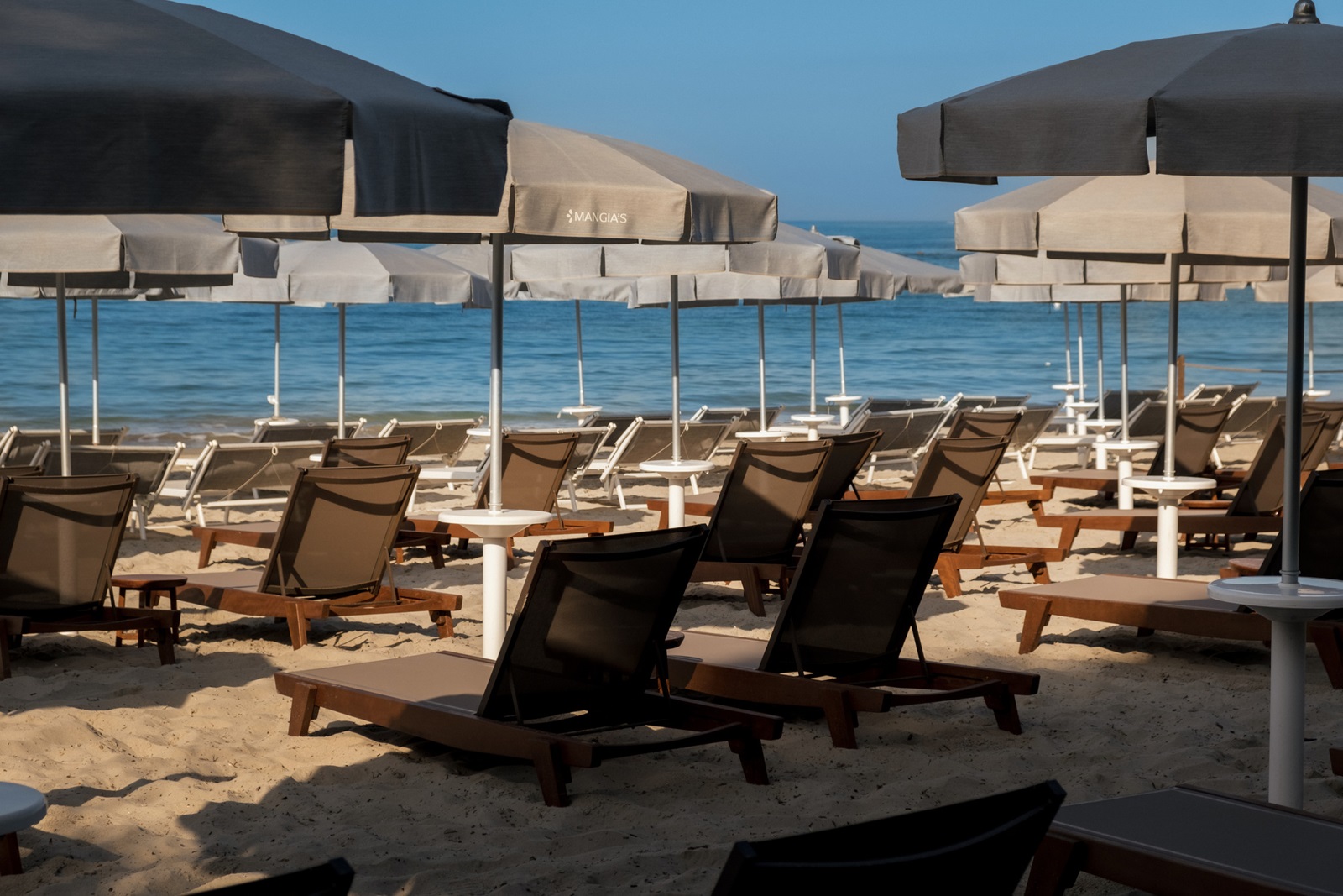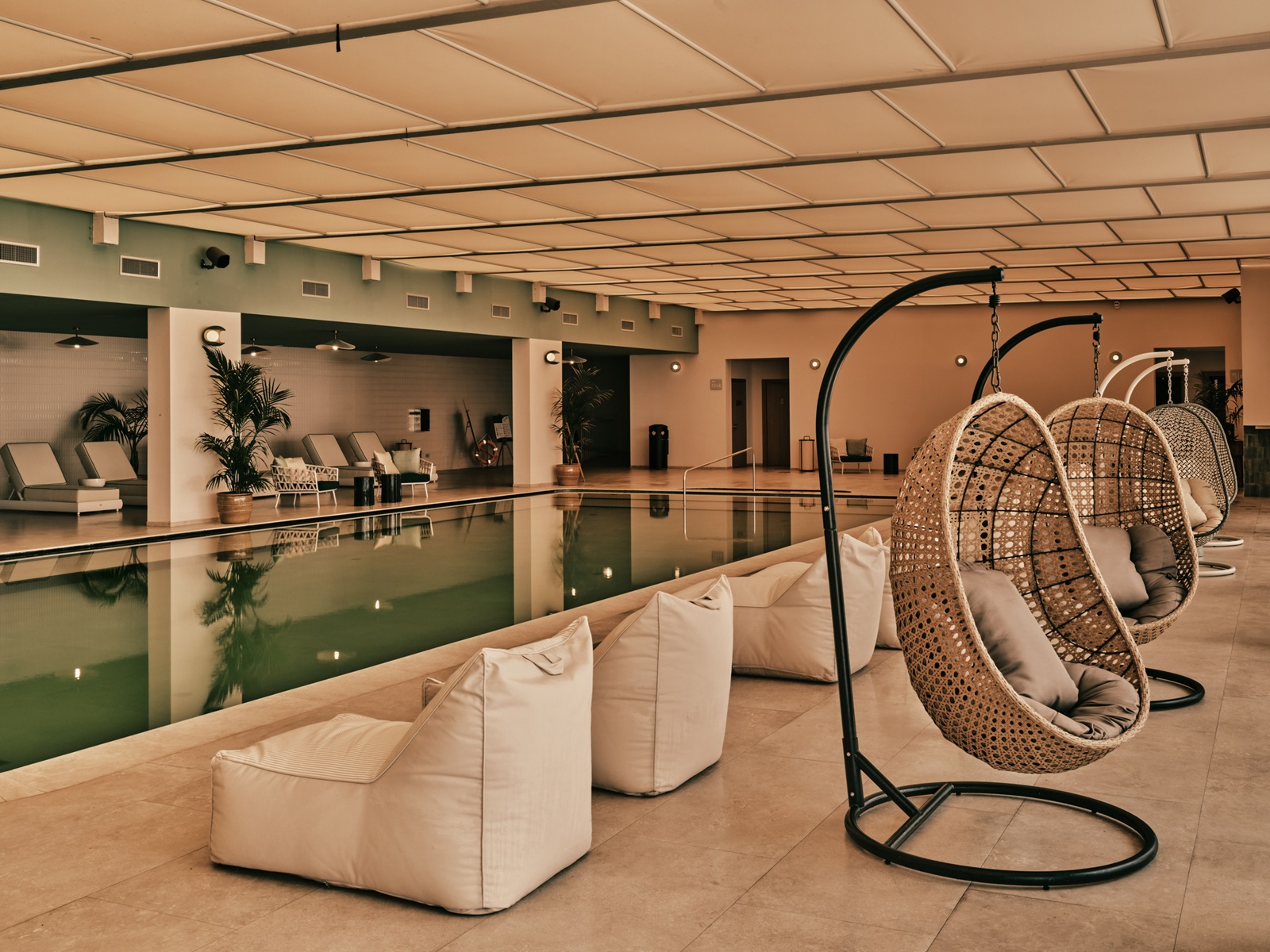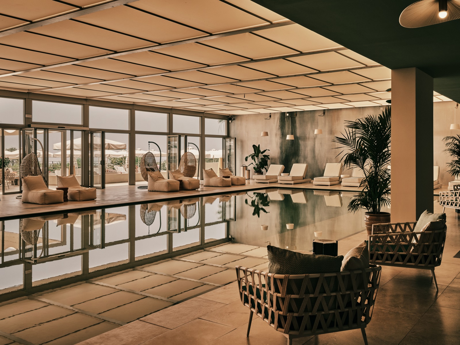 transats et parasolsà la piscine et la plage