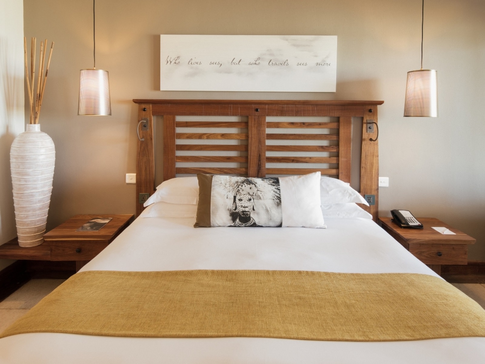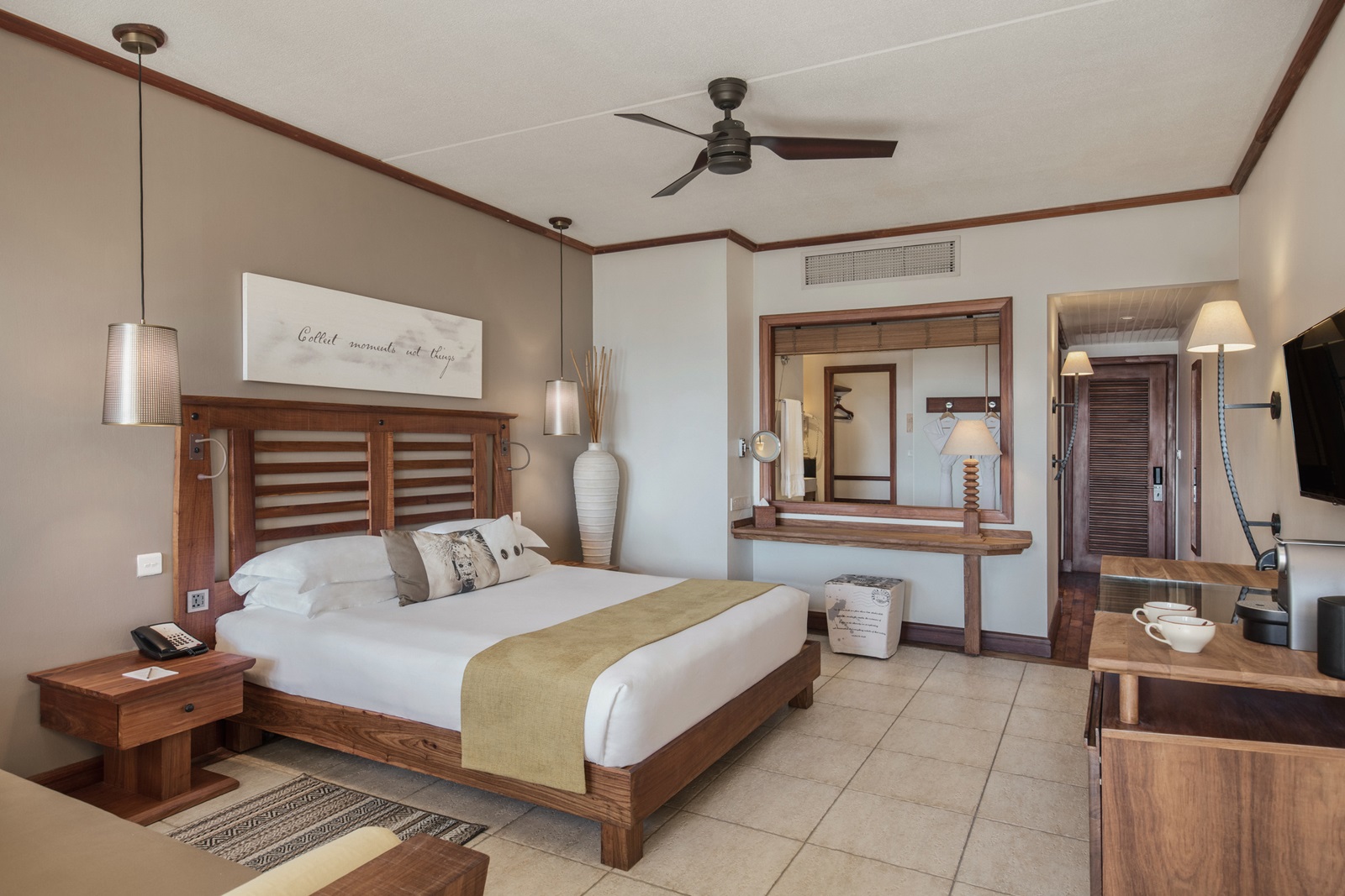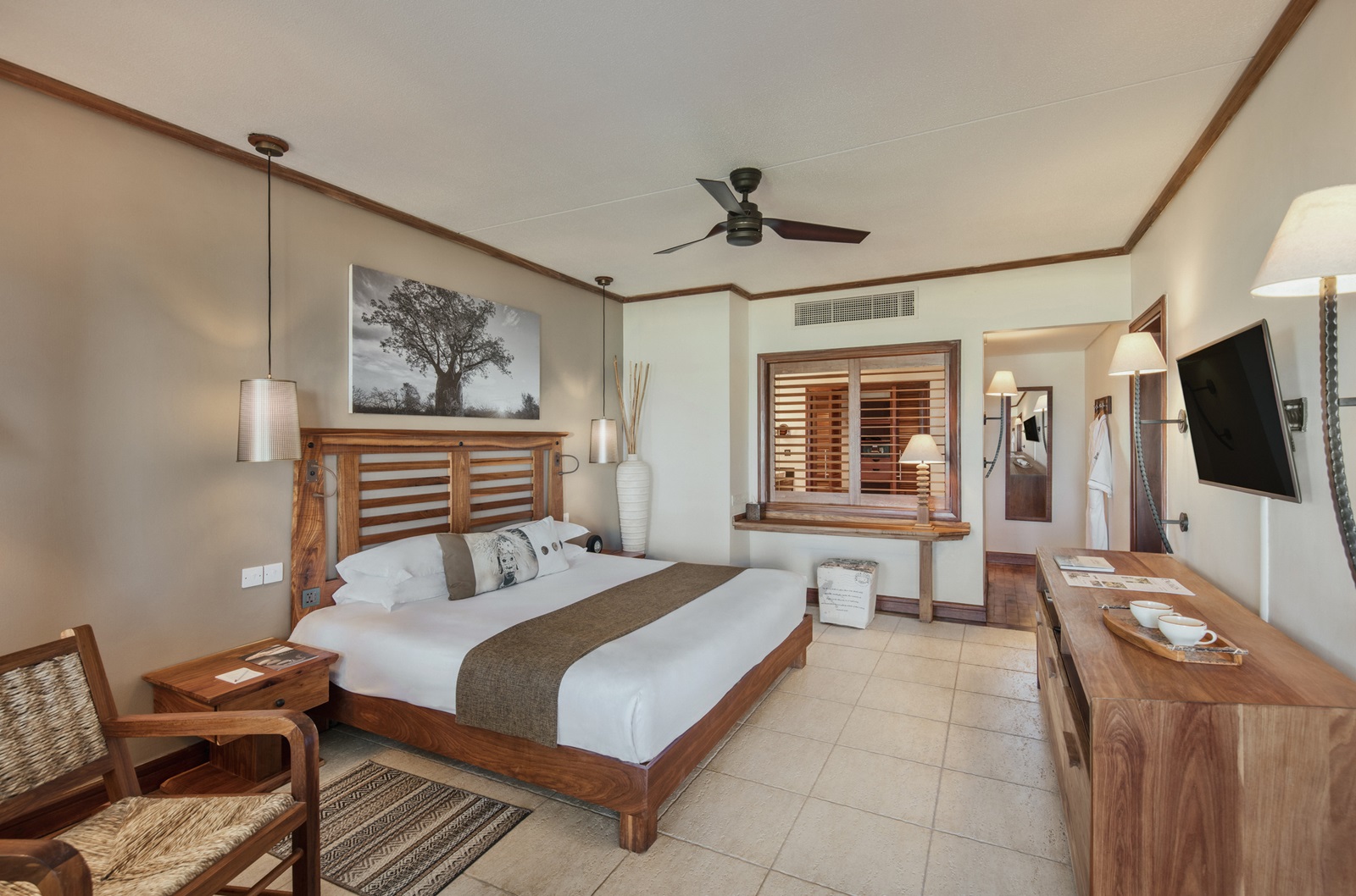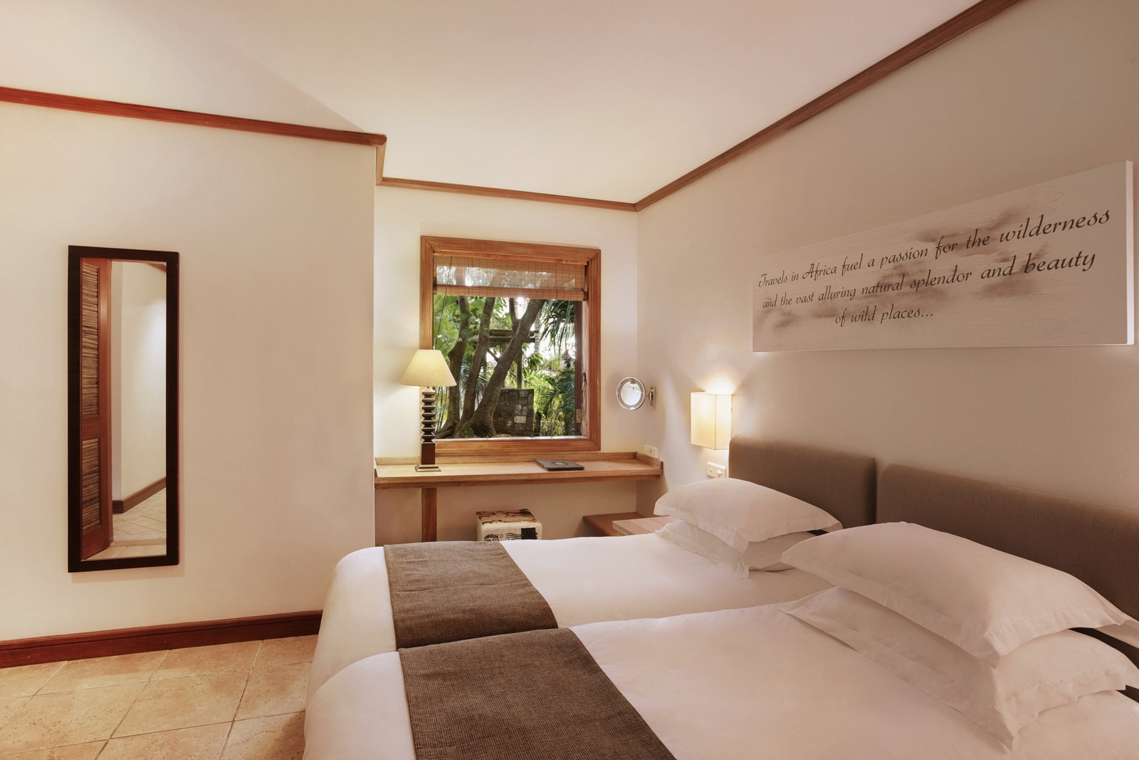 toutes les chambres contemporaines de style élégant et chaleureux qui emprunte à l'héritage africain de l'île disposent d'une douche, sèche-cheveux, sorties de bain et pantoufles, téléphone, wifi, téléphone, TV à écran plat, percolateur à café et à thé, appareil Nespresso® (€), coin salon, minibar, coffre-fort, climatisation, ventilateur de plafond et balcon ou terrasse